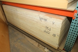 Contents of pallet shelf including plywood and MDF, most sheets are 4' x 8' x 3/4 thick, 9 pieces of MDF, 12 pieces of plywood. Buyer must take all. Buyer is responsible for the proper and safe removal to the first disconnect including bringing all the proper tools, equipment, supplies, and help. There will NOT be any help or equipment onsite to assist in removal.