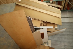 Assorted sheet stock and wood stock leaning around two stacks of previous lots. Including plywood, lumber, some primed pieces, some scrap stock, MDF, veneer, etc. All varying in length, width and thickness. Longest piece approx. 10.5'. Buyer must take all. Buyer is responsible for the proper and safe removal to the first disconnect including bringing all the proper tools, equipment, supplies, and help. There will NOT be any help or equipment onsite to assist in removal.