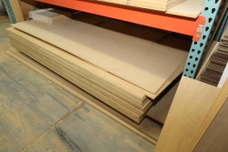 Stack of sheet stock including MDF, and plywood ranging from 3/4 to 5/8. Most measuring at 4'x8'. Also includes white painted shutters. Buyer must take all. Buyer is responsible for the proper and safe removal to the first disconnect including bringing all the proper tools, equipment, supplies, and help. There will NOT be any help or equipment onsite to assist in removal.