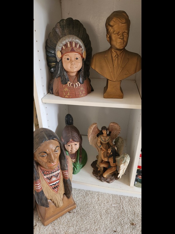 Items include Underwood manual typewriter; HO Chef Boyardee trains; antique phonograph cabinet; antique school desk/chair combo; vintage cameras; historical newspaper headlines; Native American/Oriental dolls; Girl Scout paraphernalia; lots of dolls; camel-back sofa/loveseat; Wedgwood China; Pftalzgraff stoneware; decoys/owl decor; depression glass; Parian Ware hand vase; Whirlpool washer/dryer; Frigidaire range; Toshiba microwave; Pyrex/Corelle mixing bowls; Brinkman 4 + side burner gril; cast iron bird bath base; trailer hitches; Brentwood 12' boat on Cox trailer; bench grinder; chain saw; and more. Items are located in Avon, CT.