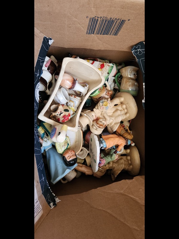 Items include Underwood manual typewriter; HO Chef Boyardee trains; antique phonograph cabinet; antique school desk/chair combo; vintage cameras; historical newspaper headlines; Native American/Oriental dolls; Girl Scout paraphernalia; lots of dolls; camel-back sofa/loveseat; Wedgwood China; Pftalzgraff stoneware; decoys/owl decor; depression glass; Parian Ware hand vase; Whirlpool washer/dryer; Frigidaire range; Toshiba microwave; Pyrex/Corelle mixing bowls; Brinkman 4 + side burner gril; cast iron bird bath base; trailer hitches; Brentwood 12' boat on Cox trailer; bench grinder; chain saw; and more. Items are located in Avon, CT.