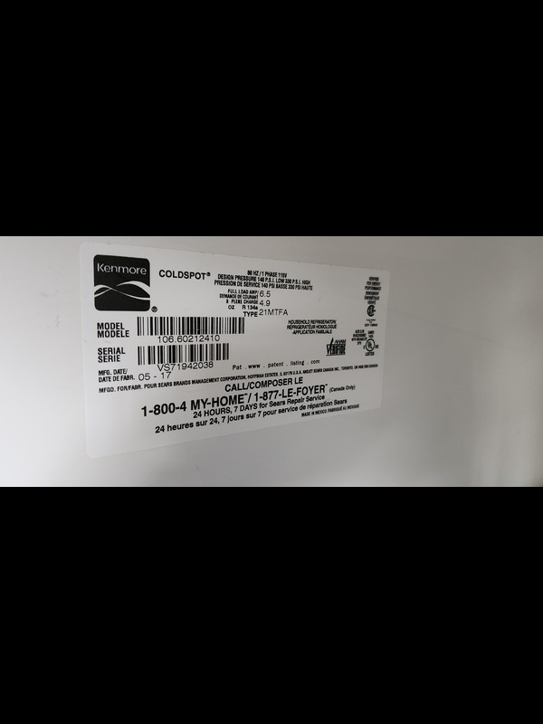 Kenmore Refrigerator. Kenmore Coldspot refrigerator 10660212410, 33"Wx30"Dx65"H (needs cleaning).
