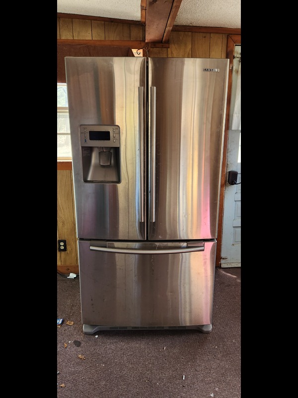 Samsung Stainless Steel Refrigerator. Samsung refrigerator with water & ice dispenser RF267AERS, 3'Wx30.5"Dx70"H (req cleaning).
