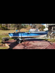 Brentwood Boat, Suzuki Outboard Motor & Boating Gear. Brentwood 12' boat on Cox trailer; Suzuki 2.5 outboard motor; mushroom anchor with chain; pair of oars; boat hook; three life vests; bag of ropes. No titles/registration for both the boat & trailer. They are being sold bill of sale only. Item is located outdoors & in the garage.