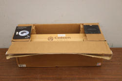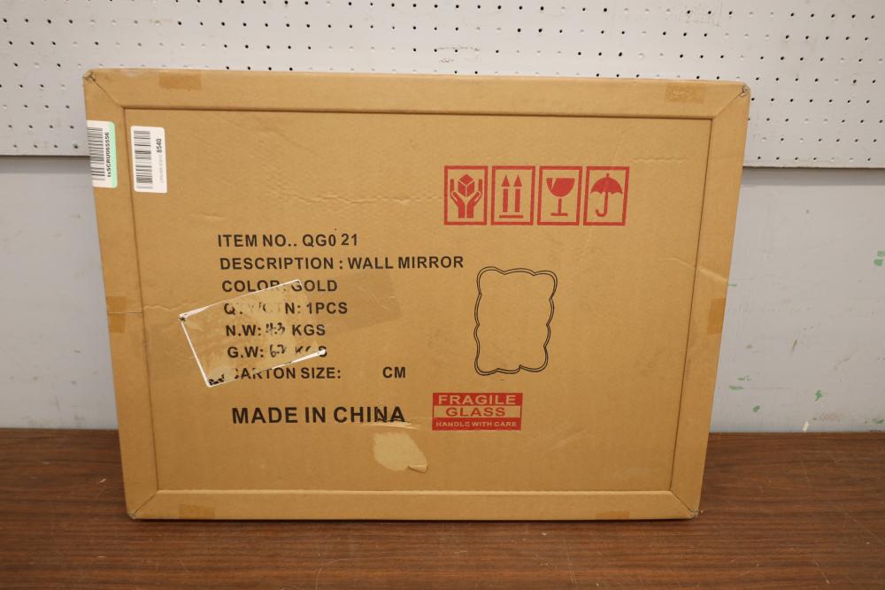 20" X 28" gold colored hanging bathroom mirror. Appearing to be new in original box.