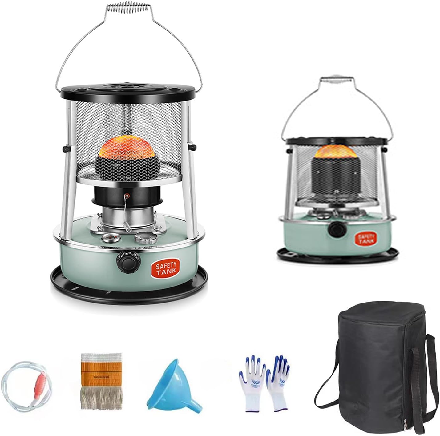 Kerosene 9,000 BTU/h heater model DMY-001, 4.5L tank capacity, with emergency preparedness kit.