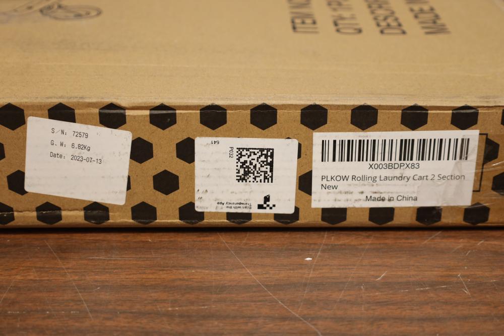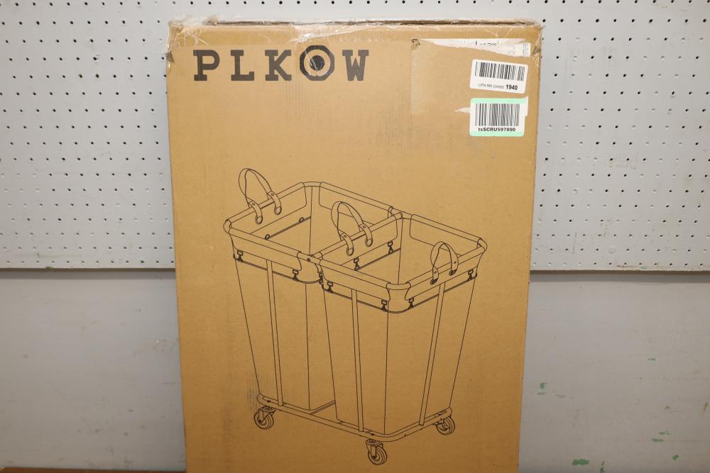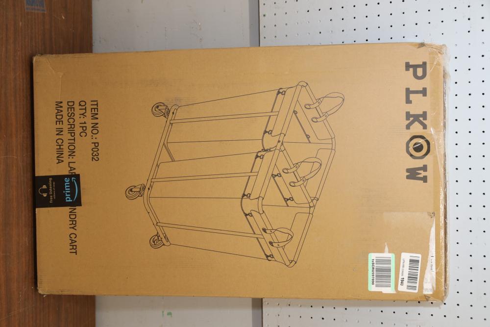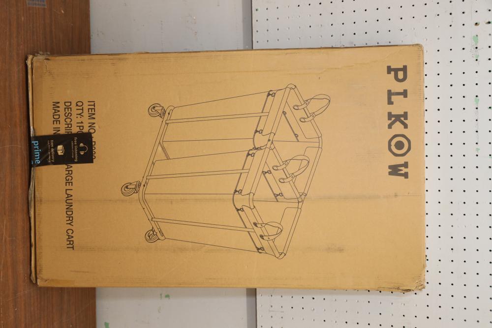 Plkow rolling laundry cart item# P032. Appearing to be new in original box.