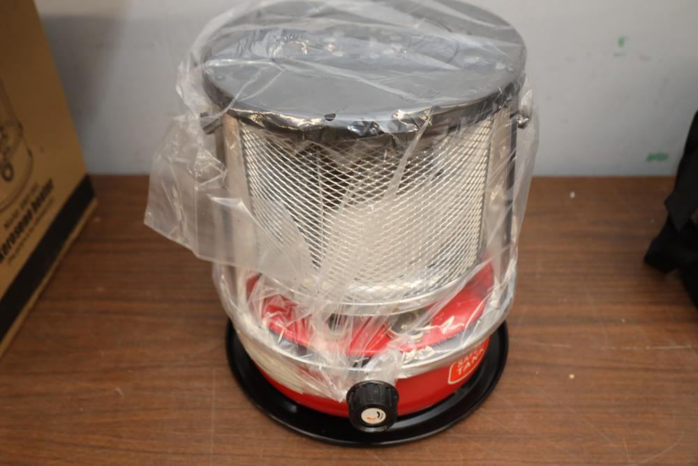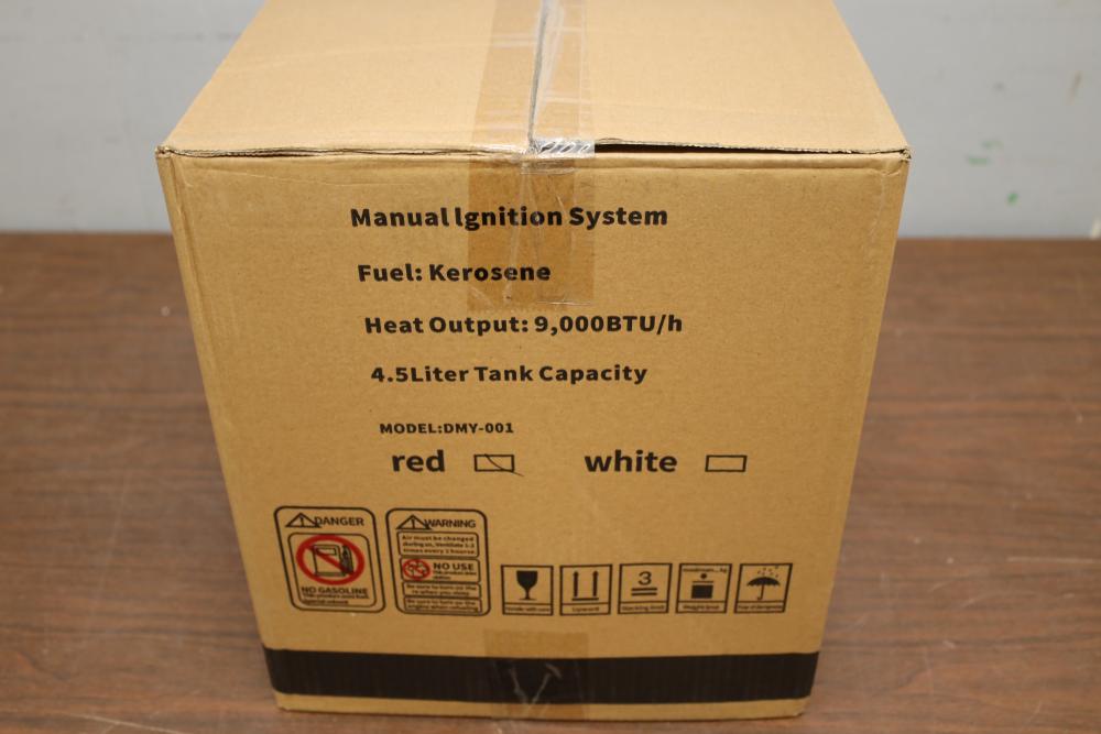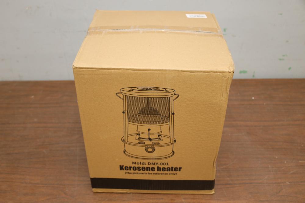 Kerosene 9,000 BTU/h heater model DMY-001, 4.5L tank capacity, with emergency preparedness kit.