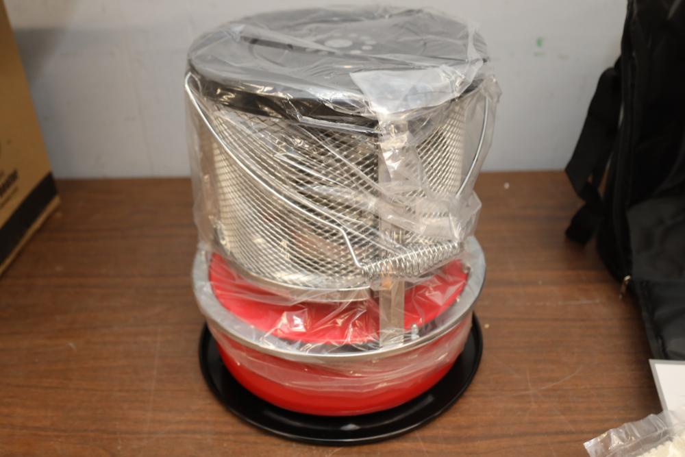 Items include HearthSong giant inflatable dome rocker; Sunnyglade 9' patio umbrella; Syndra decorative rustic hanging mirror; Vezzio 9.5Qt stand mixer; Colsent table top fire pit; Outwob ceiling fan; Fun-Worx heat press machine for sublimation; Mueller Ultrasonic nugget ice maker; Juissiart meat grinder; Higospro portable full body sauna; Multifunctional Korean electric heat pan; Vmaitech cordless electric mop; white nesting coffee tables; Anesty airbrush paint sprayer booth; 10L0L 2 passenger golf cart enclosure; Unicook 24" X 18" rectangular pizza stone; Kattee leather purse; hanging pendant lights; Hardlight weatherproof dog door and more. Items are located in Pleasant Valley, NY.