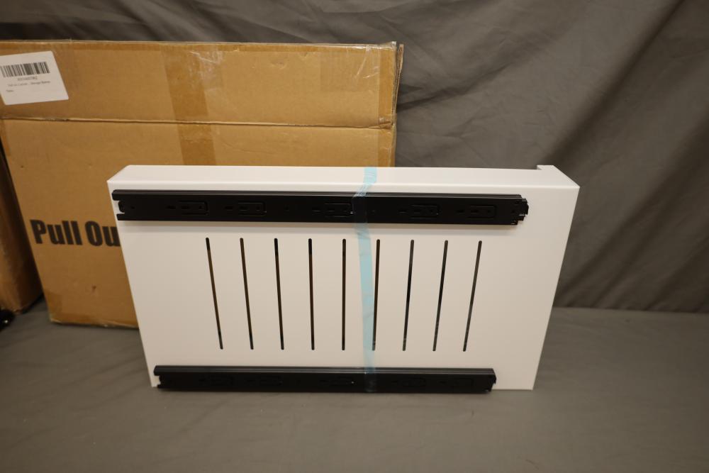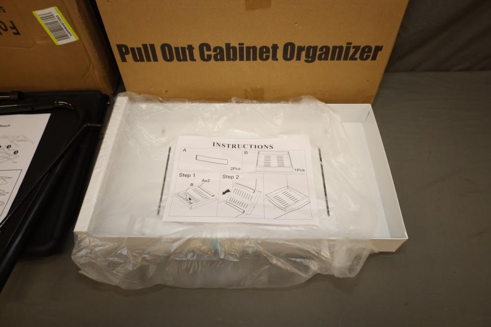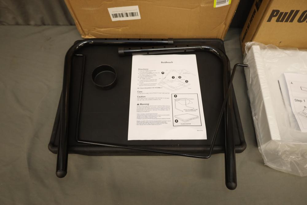 Boidheach TV tray stand, also incl pull out cabinet storage shelves. Both appearing to be new in box.