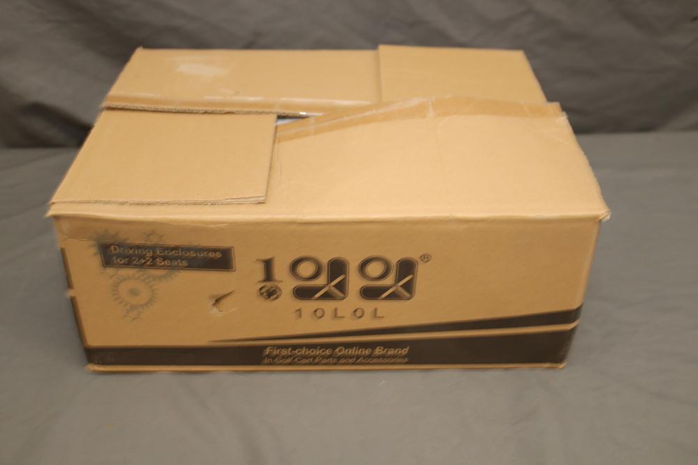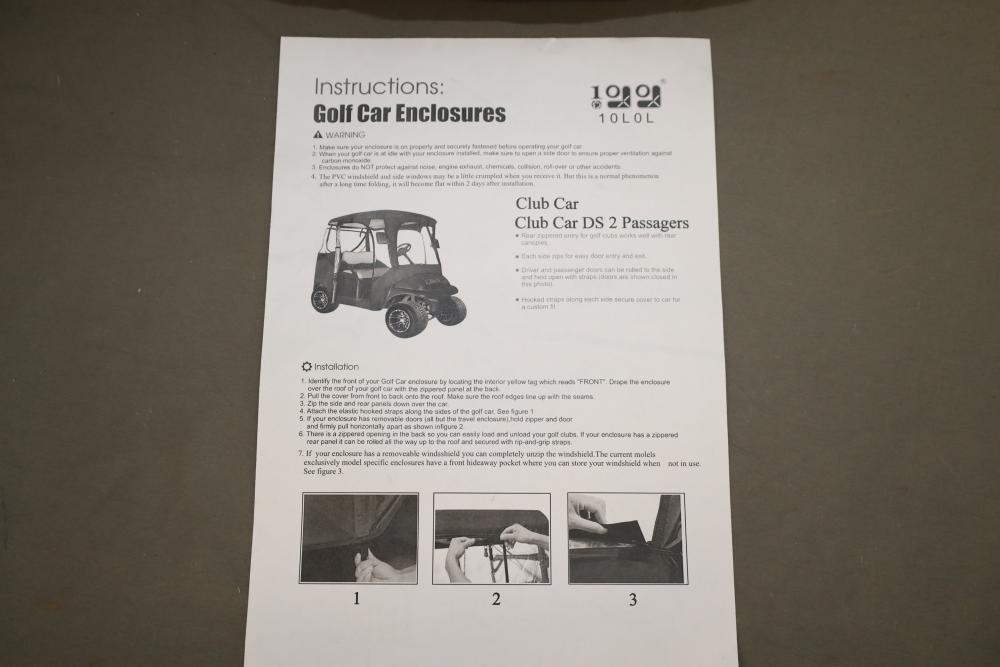 10L0L 2 passenger golf cart enclosure with zipper door. Appearing to be new in original box.