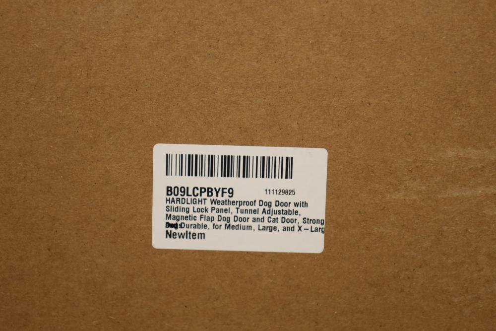Hardlight weatherproof dog door with sliding lock panel. Appearing to be new in original packaging.