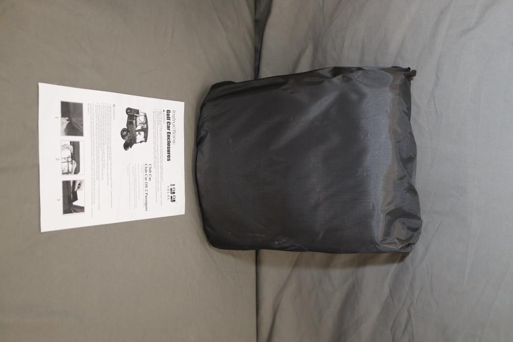 10L0L 2 passenger golf cart enclosure with zipper door. Appearing to be new in original box.