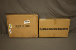 Boidheach TV tray stand, also incl pull out cabinet storage shelves. Both appearing to be new in box.