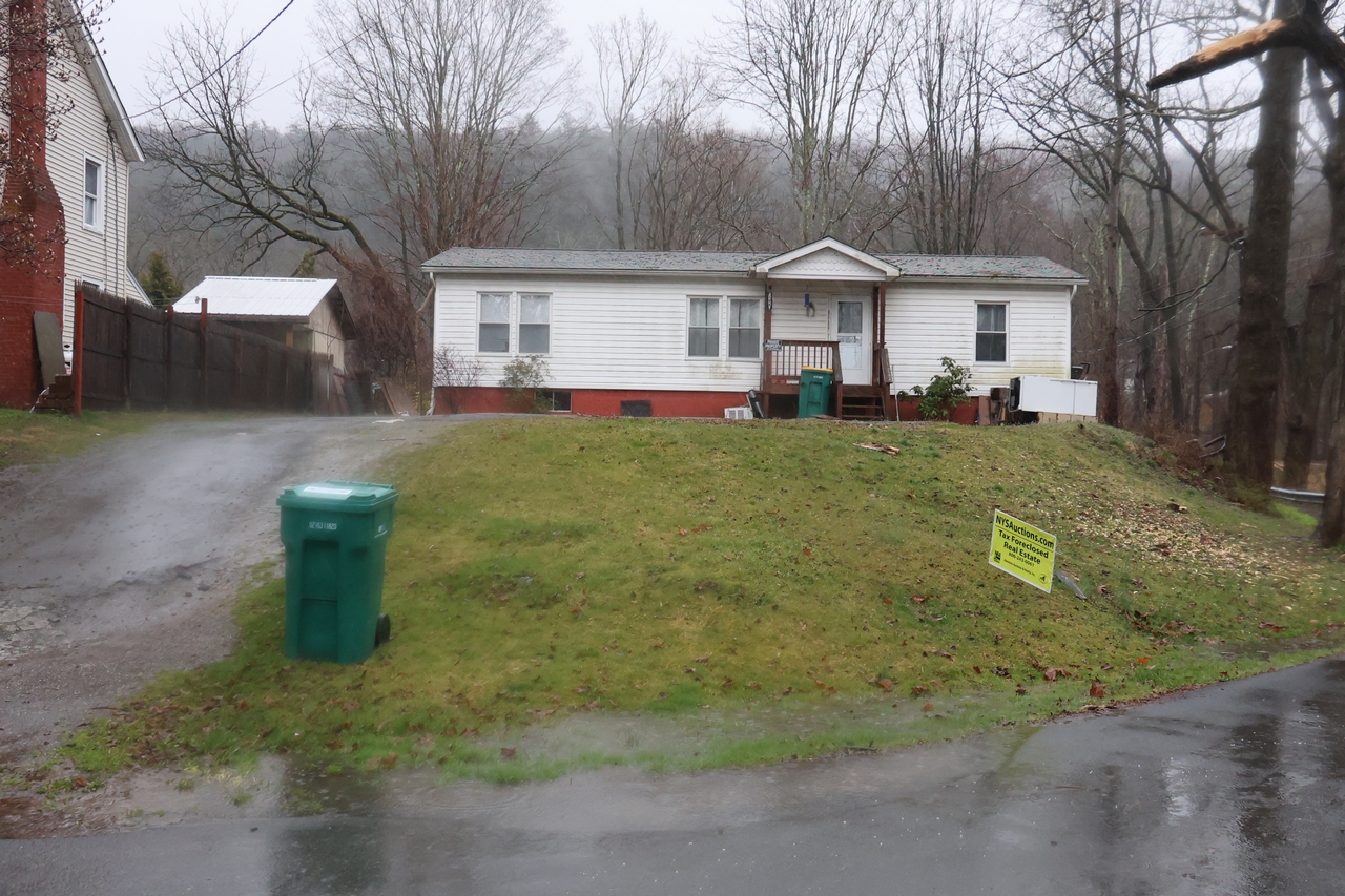 Single family residence, 1 story, Manufactured Housing style, built 1989 +/-, 1056+/- sq. ft., 3BR/2BA, porches. Waterfront on Rondout Creek. |