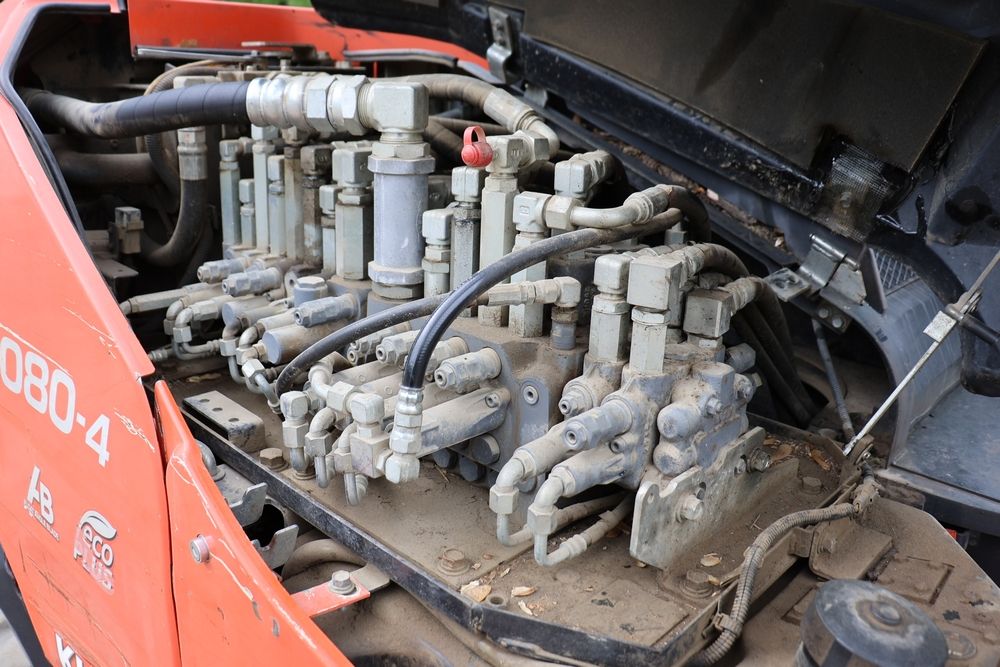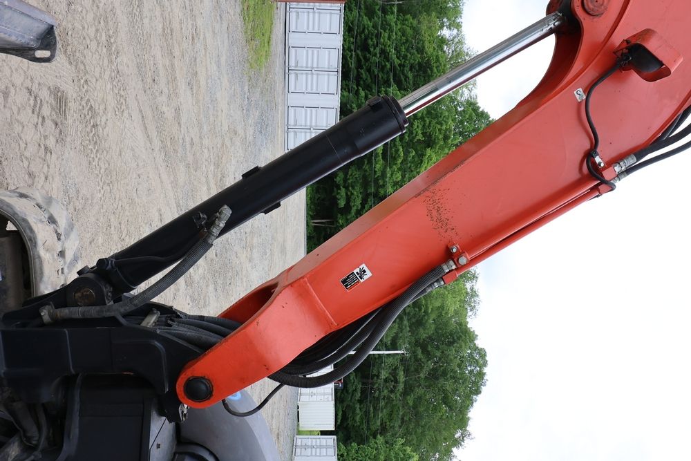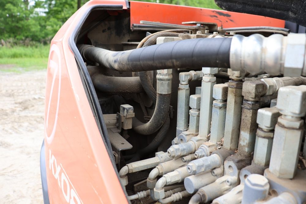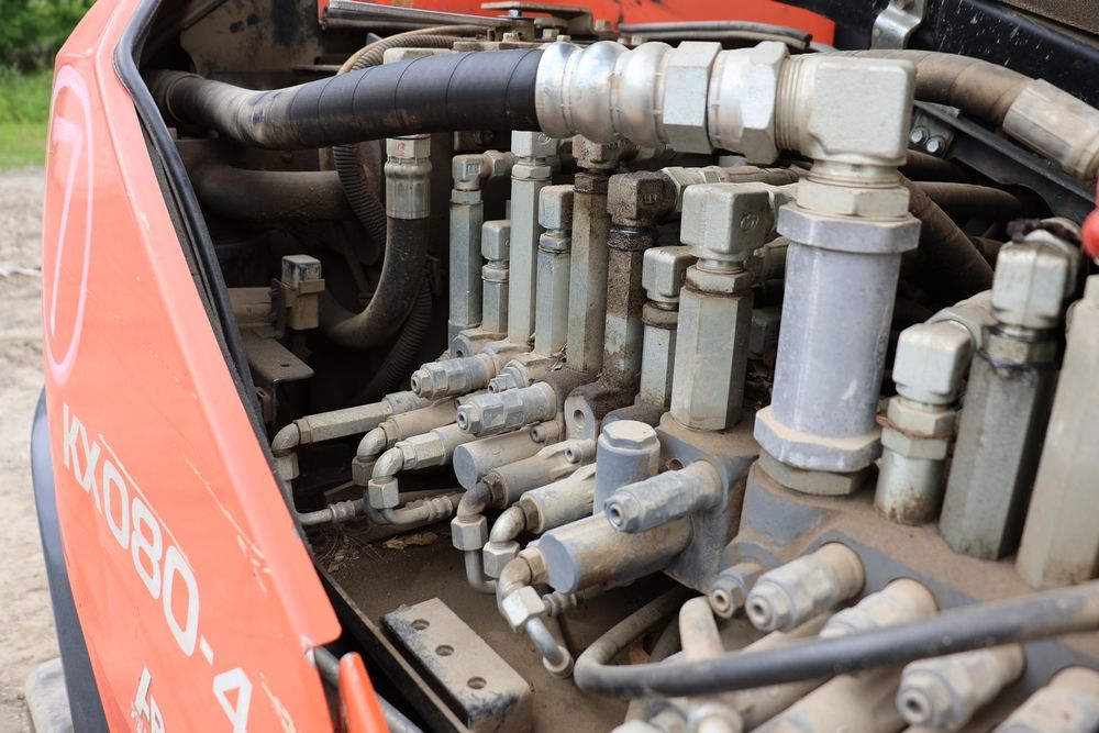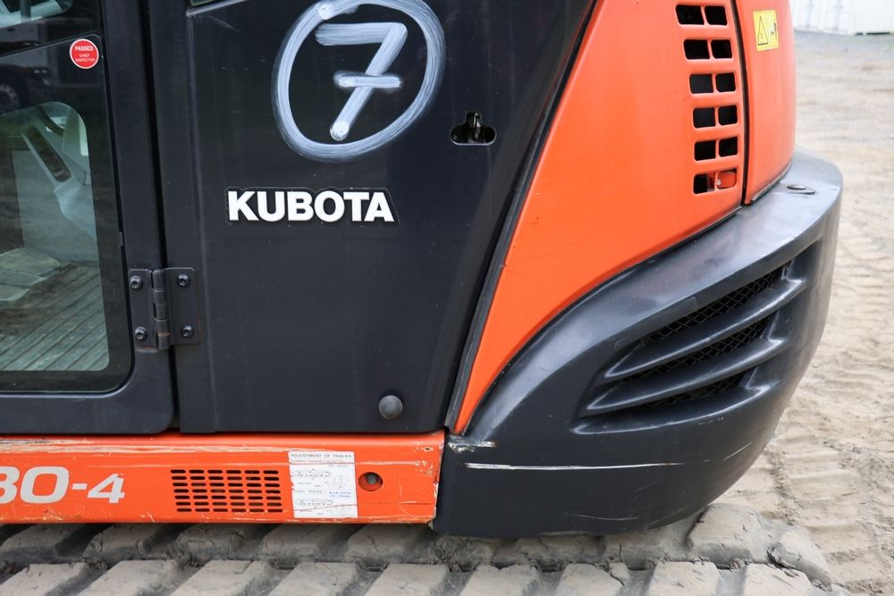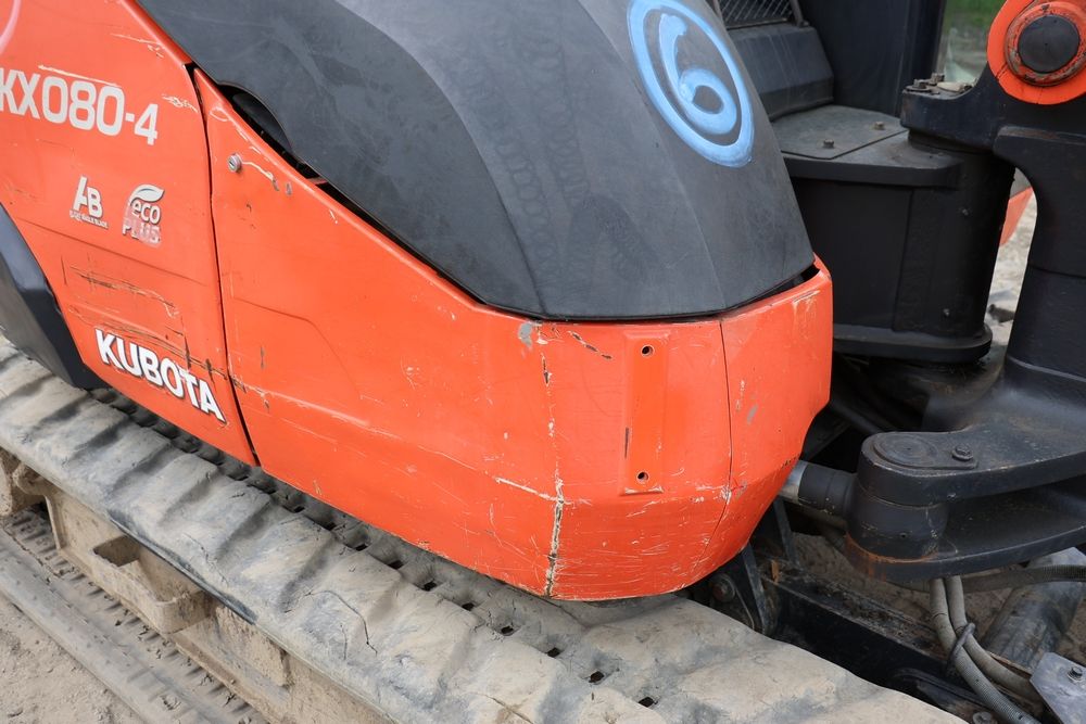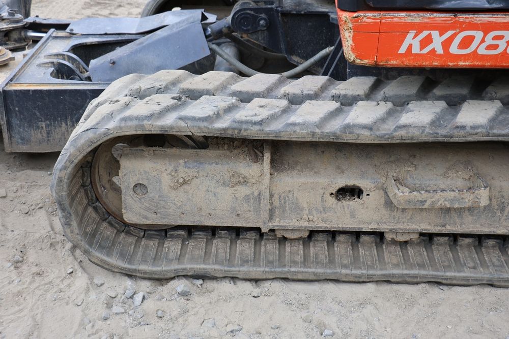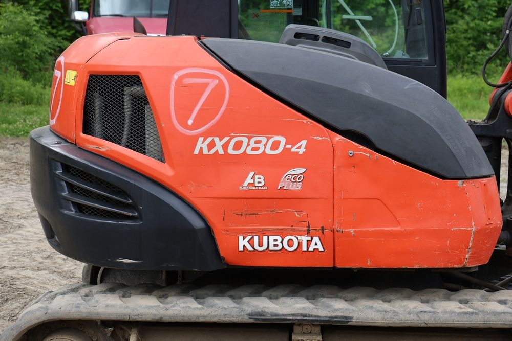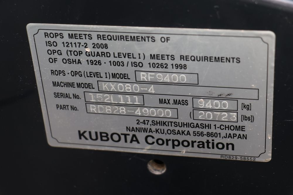 2015 Kubota KX080-4 excavator PIN: JKUK0803V01H33856, S/N 33835, engine model V3307-CR-T- EF06, engine number 8FC1090, with 36" and 24" buckets, hydraulic thumb and flat angle blade. Hour meter reading 6400. Runs, drives, and in good operating condition.
