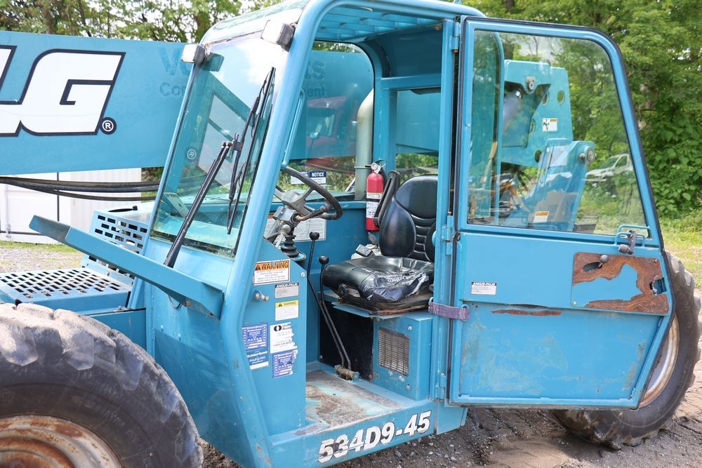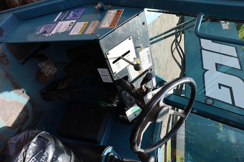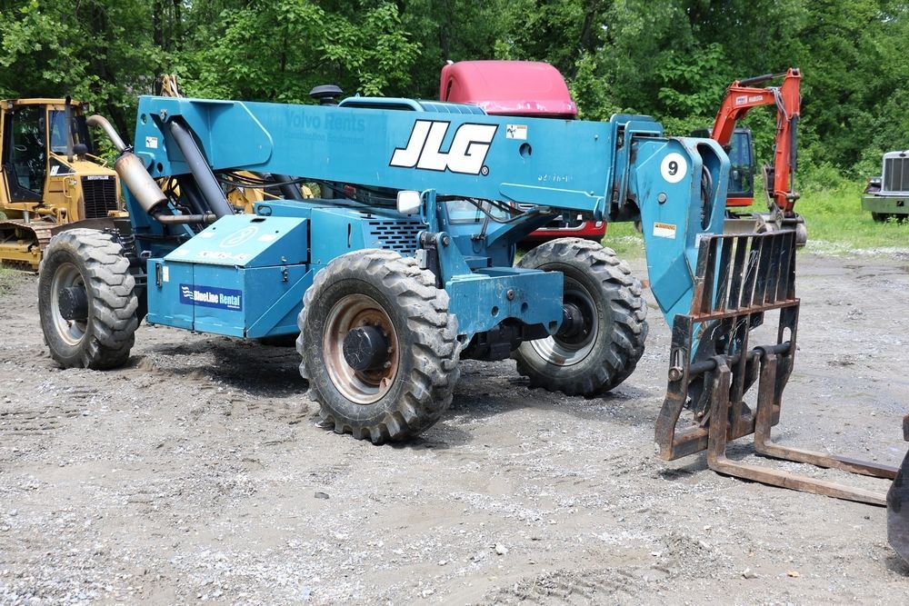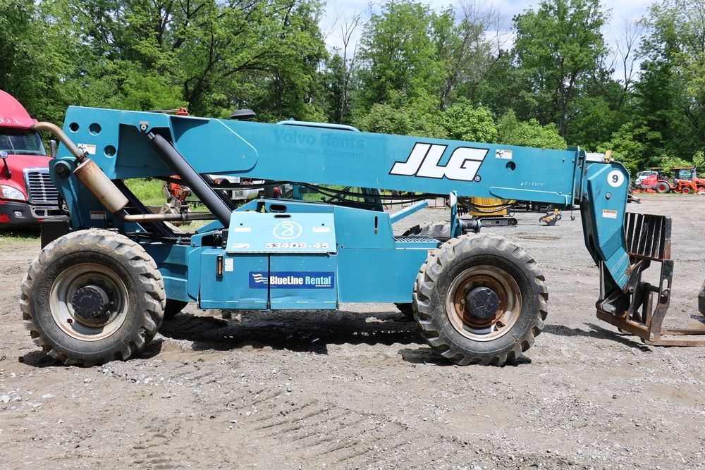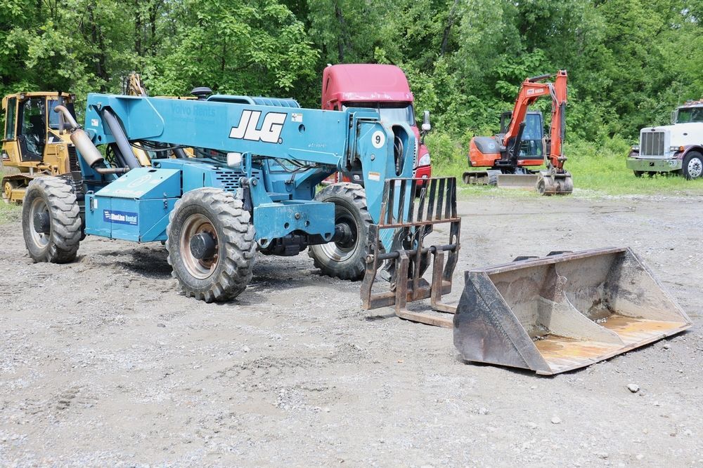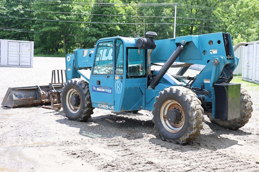 2011 JLG model 534D9-45 telescopic forklift with a 4.5L 110 Gross rated HP engine model QSB4.5, enclosed cab and hand foot controls, quick disconnect, bucket attachment, forks, Auxiliary hydraulic controls, max weight 36,000 Lb. Hour meter reading 4333. Runs, drives, and in good operating condition.