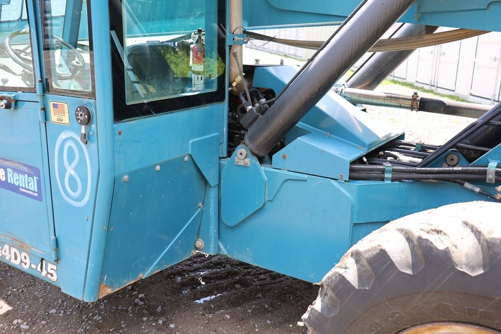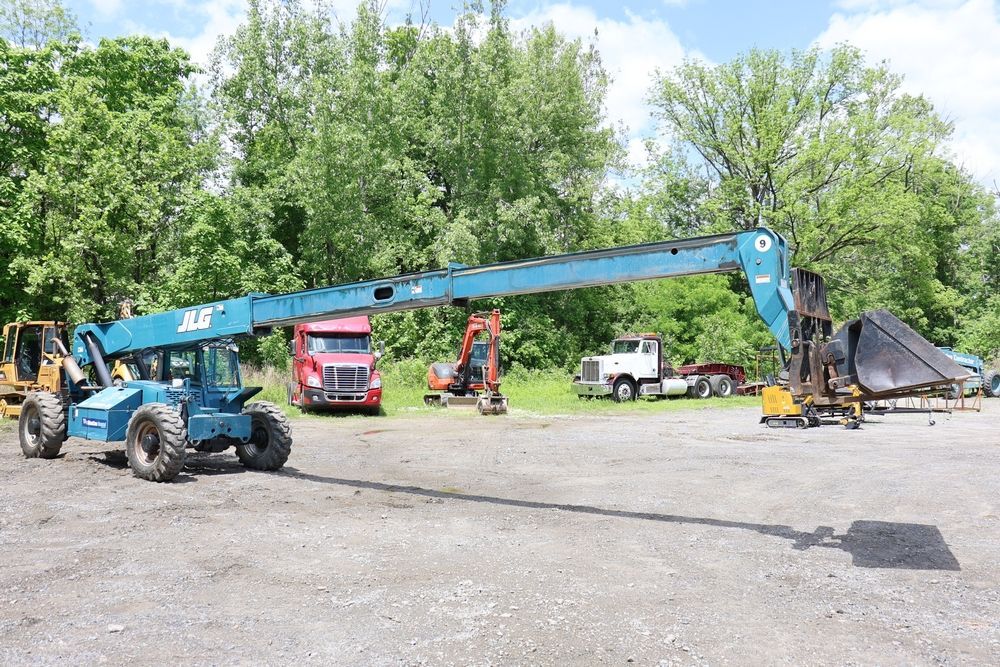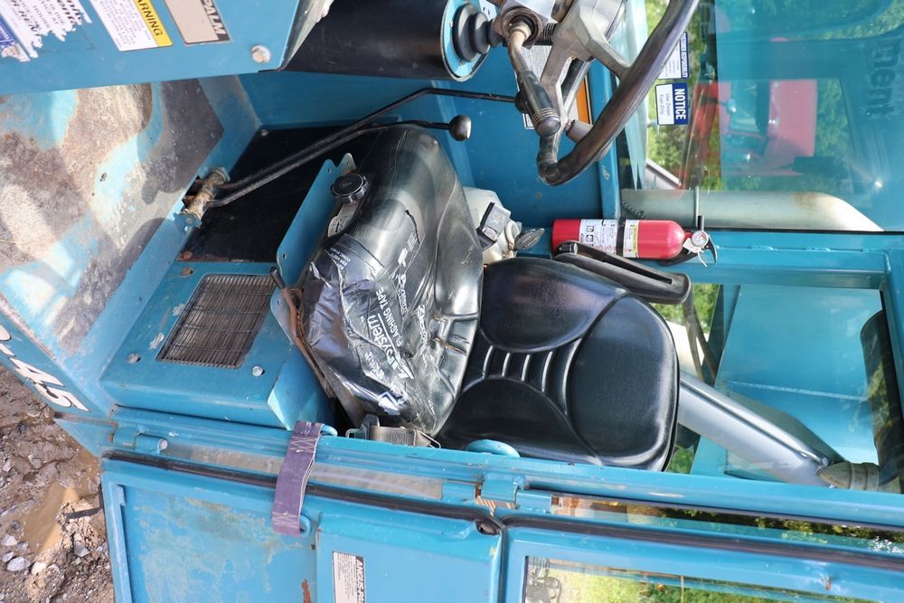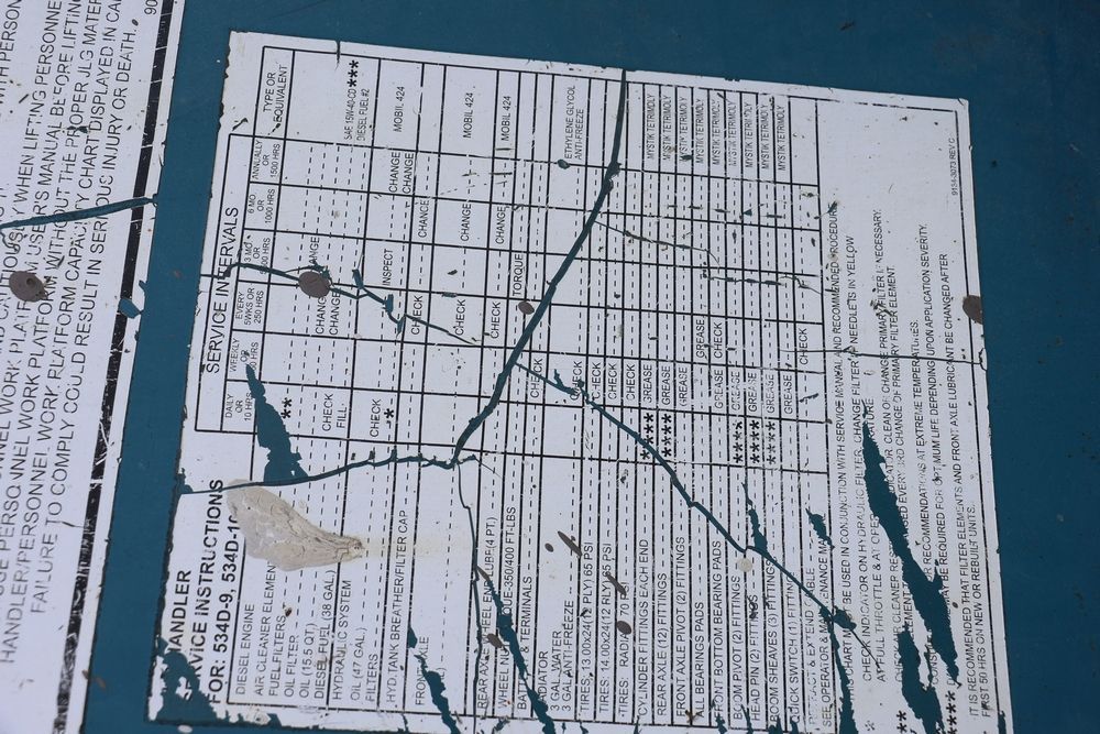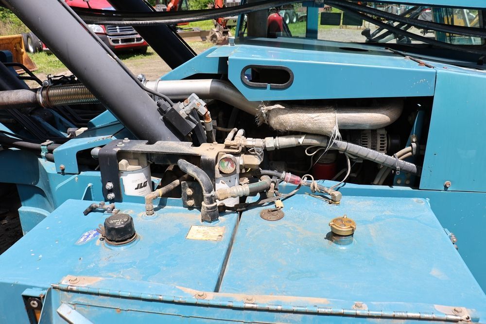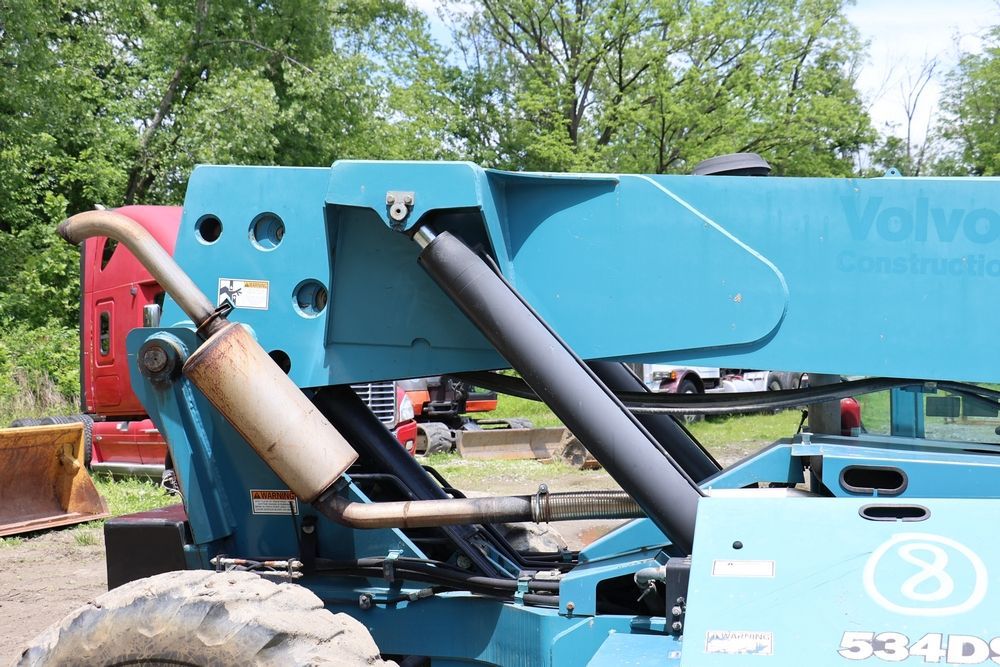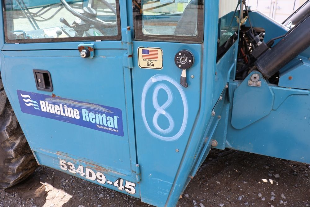 2011 JLG model 534D9-45 telescopic forklift with a 4.5L 110 Gross rated HP engine model QSB4.5, enclosed cab and hand foot controls, quick disconnect, bucket attachment, forks, Auxiliary hydraulic controls, max weight 36,000 Lb. Hour meter reading 4333. Runs, drives, and in good operating condition.
