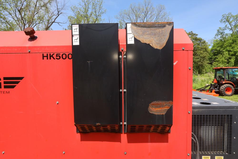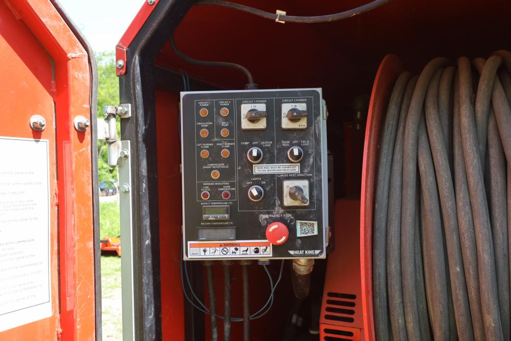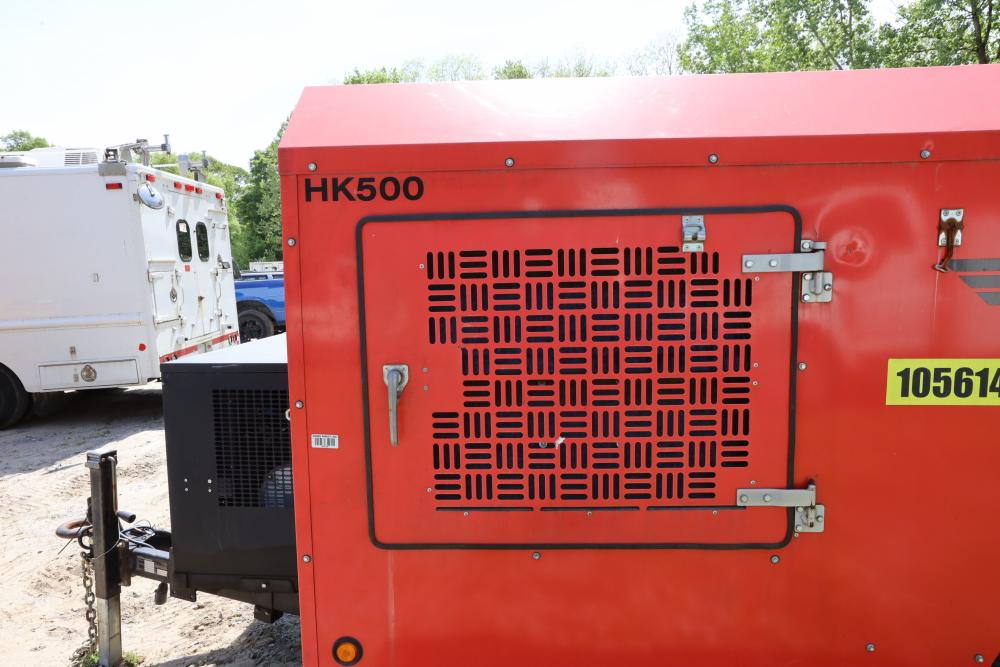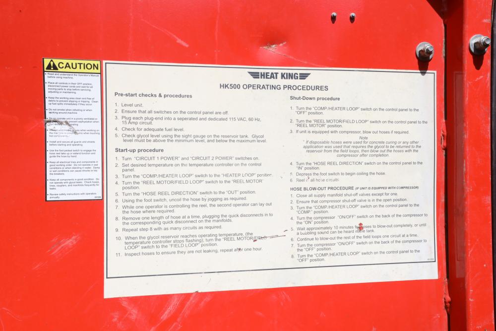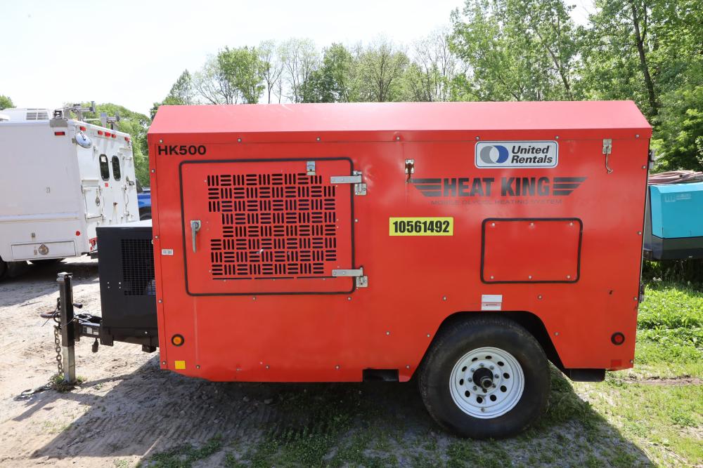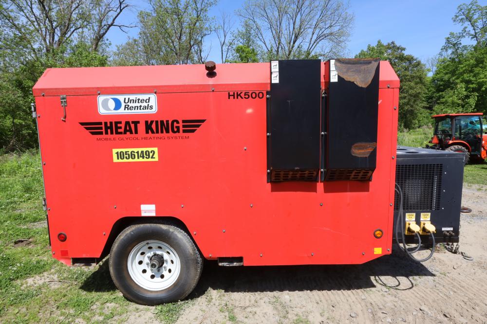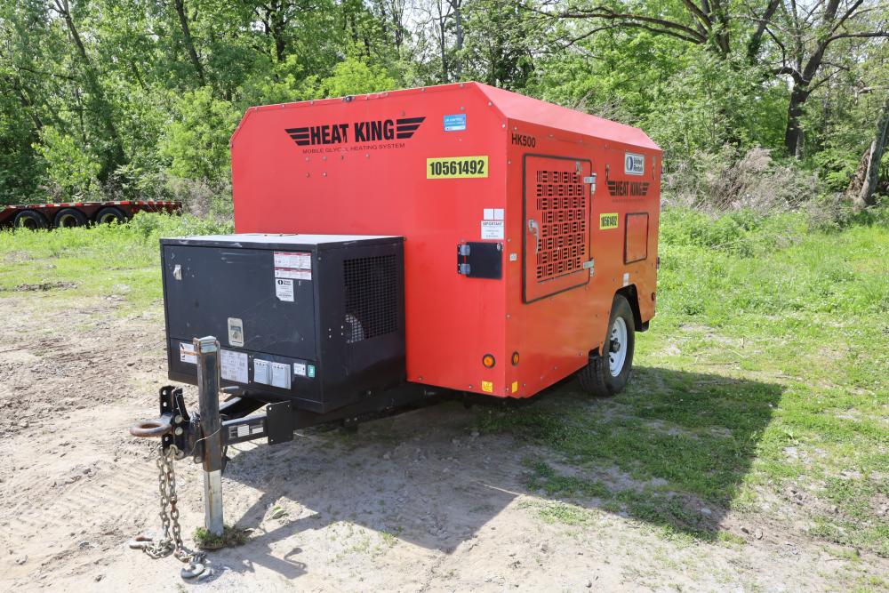 2017 Heat king HK500 mobile glycol heating system ground thaw heater with 8 hose valves, Kubota 1.1L D1105-BG-EF01 16 HP engine, hour meter reading 899.8, total operating time meter reading 0394999, Total Burner time meter reading 0167983. On a Tamarack Industries trailer MFG date December 2016, VIN 2EP330306G1021524.