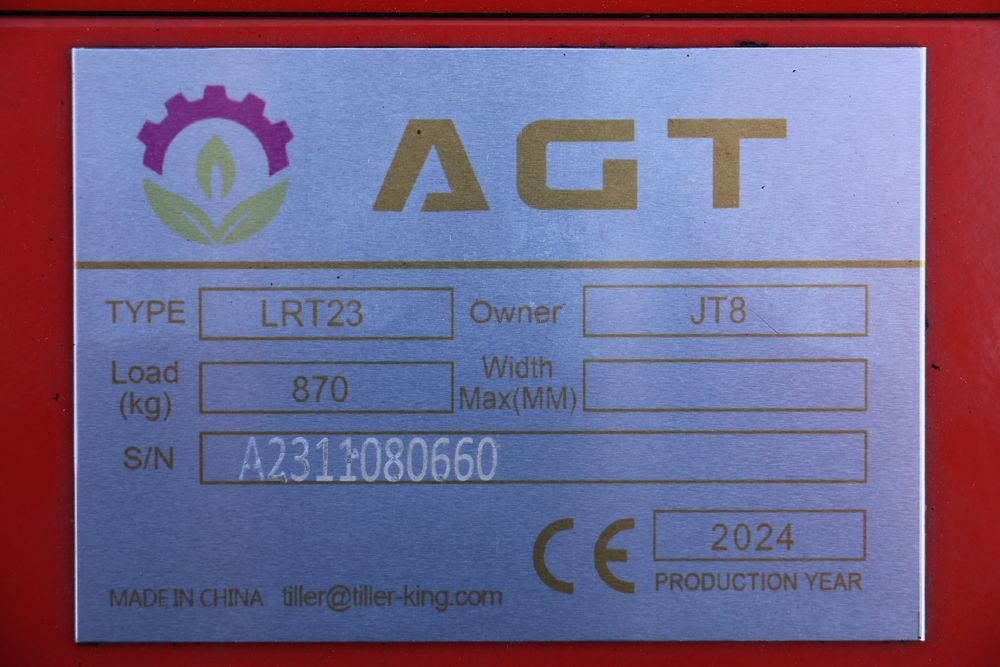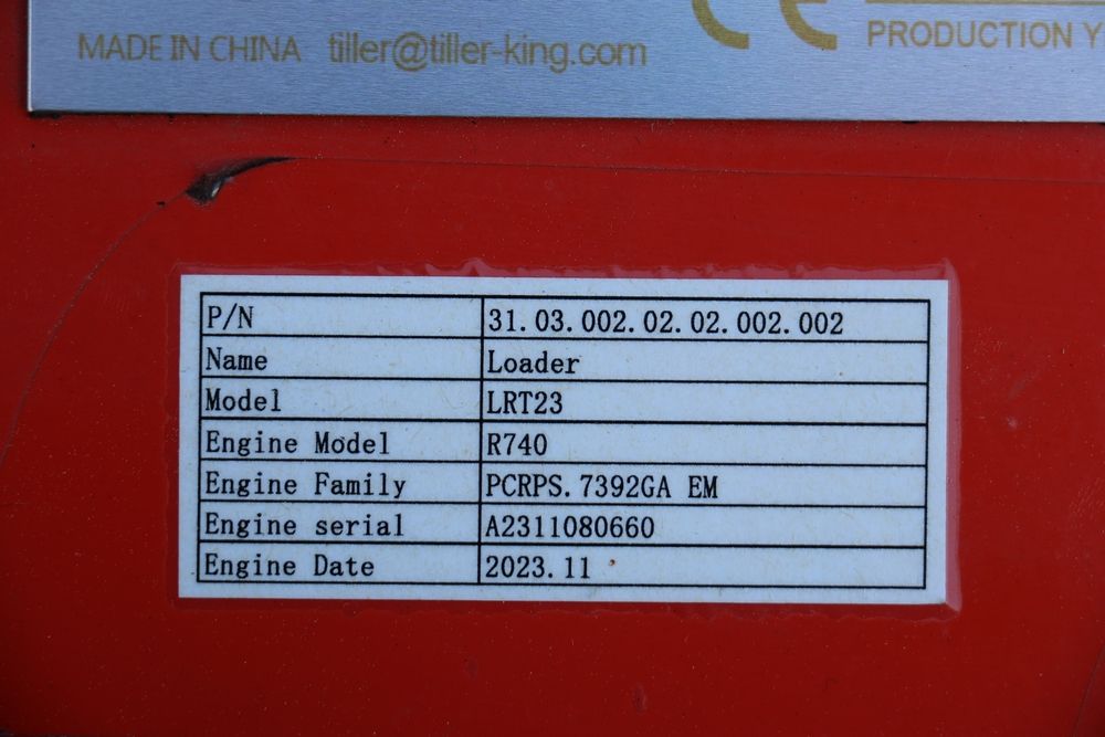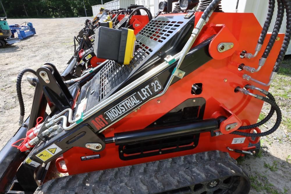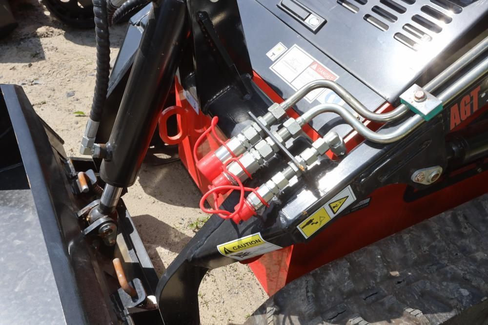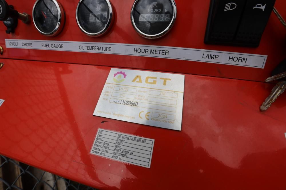 New 2024 AGT commercial ride-on Skidsteer track loader model LRT23 with RATO EPA engine model R740, 23Hp, 440lb lift capacity with hand controls and front facing lights and auxiliary hydraulic lines with less then 1 hour. Serial Number A2311080660.