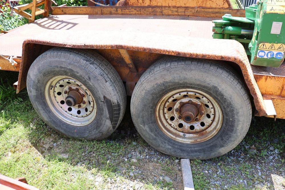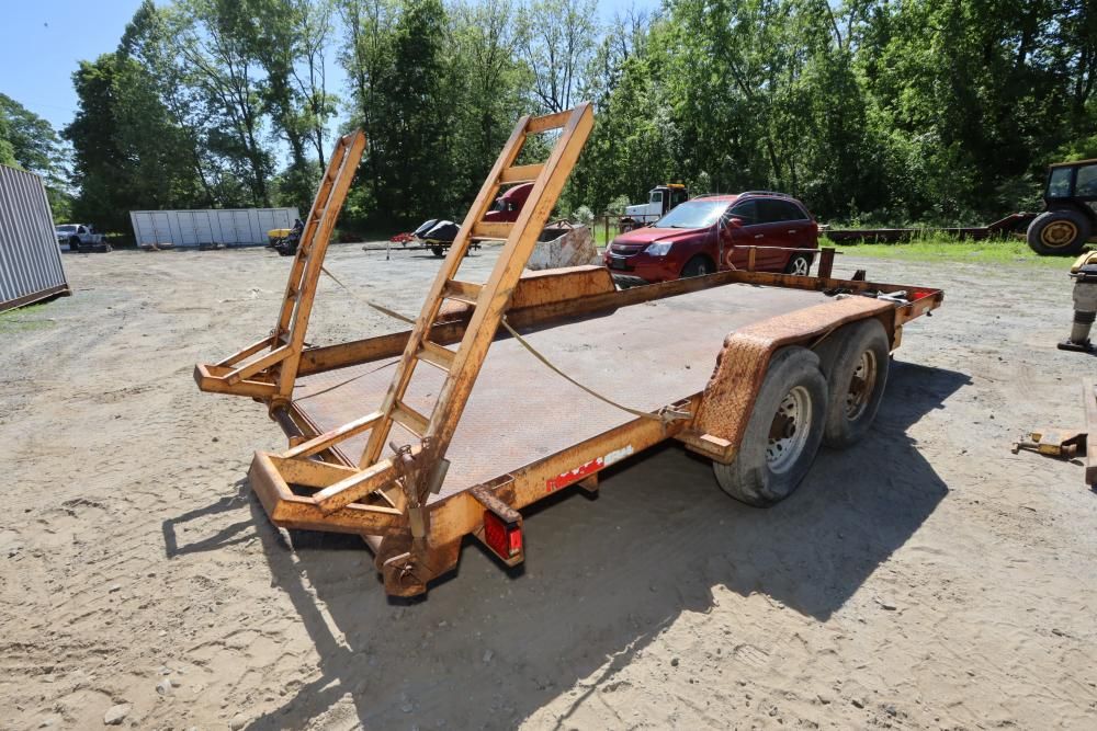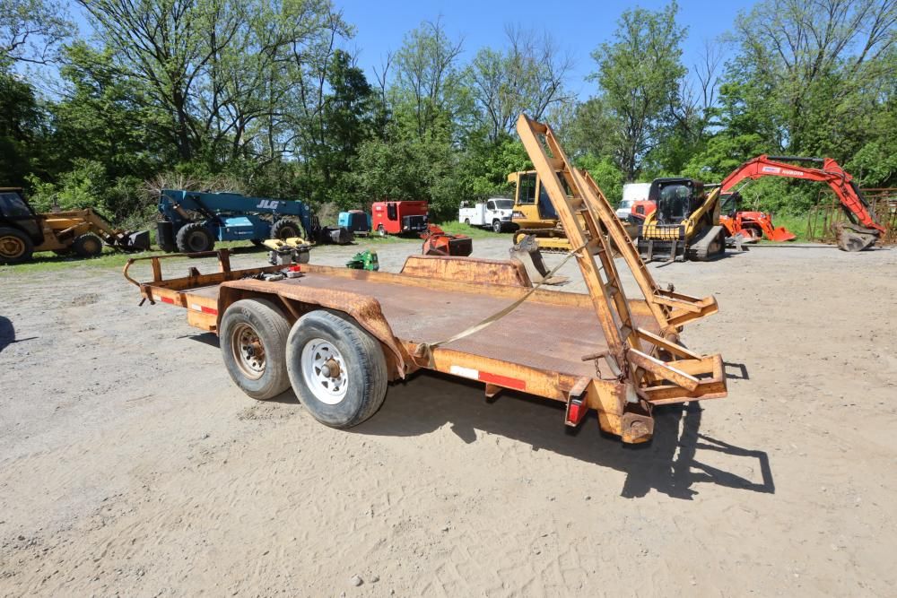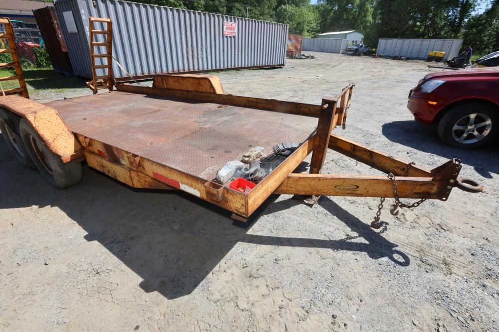 2005 Quality trailer heavy duty 7-ton tandem axle open deck equipment trailer with pintle hitch and drive-on ramps VIN: 5NDFS16285S001907. Title available.