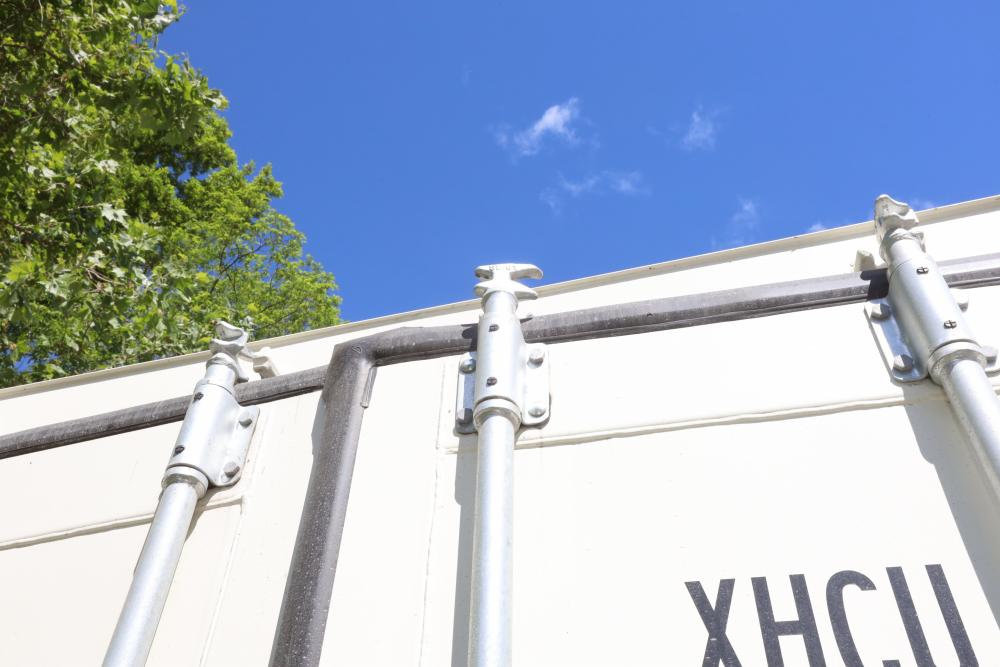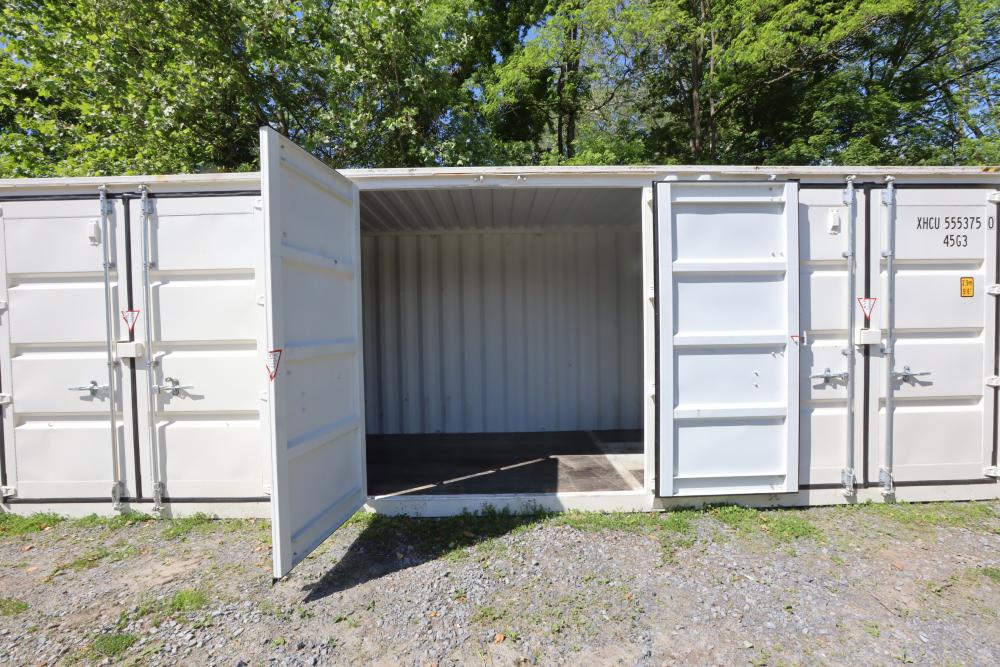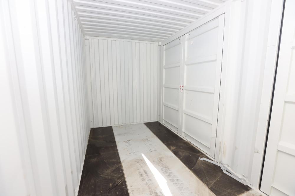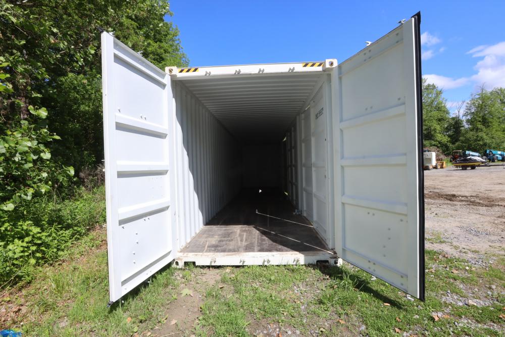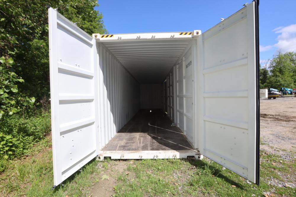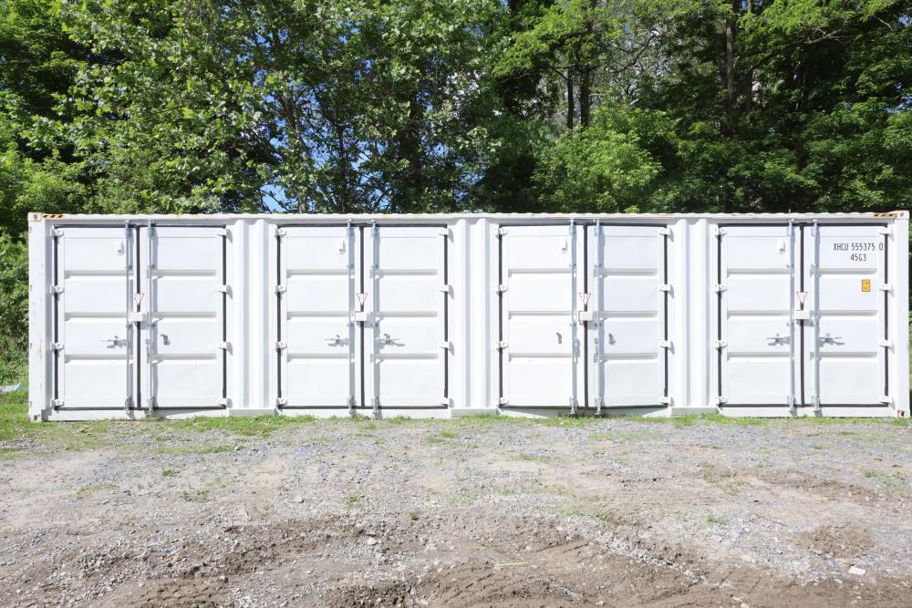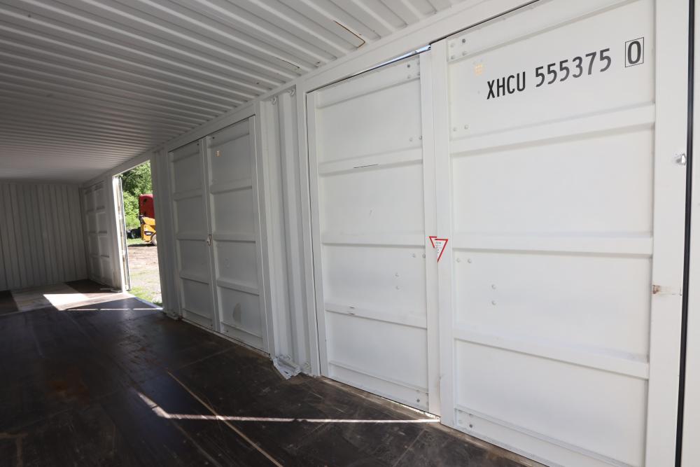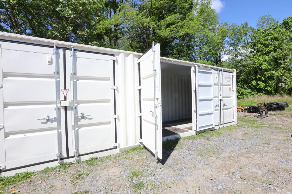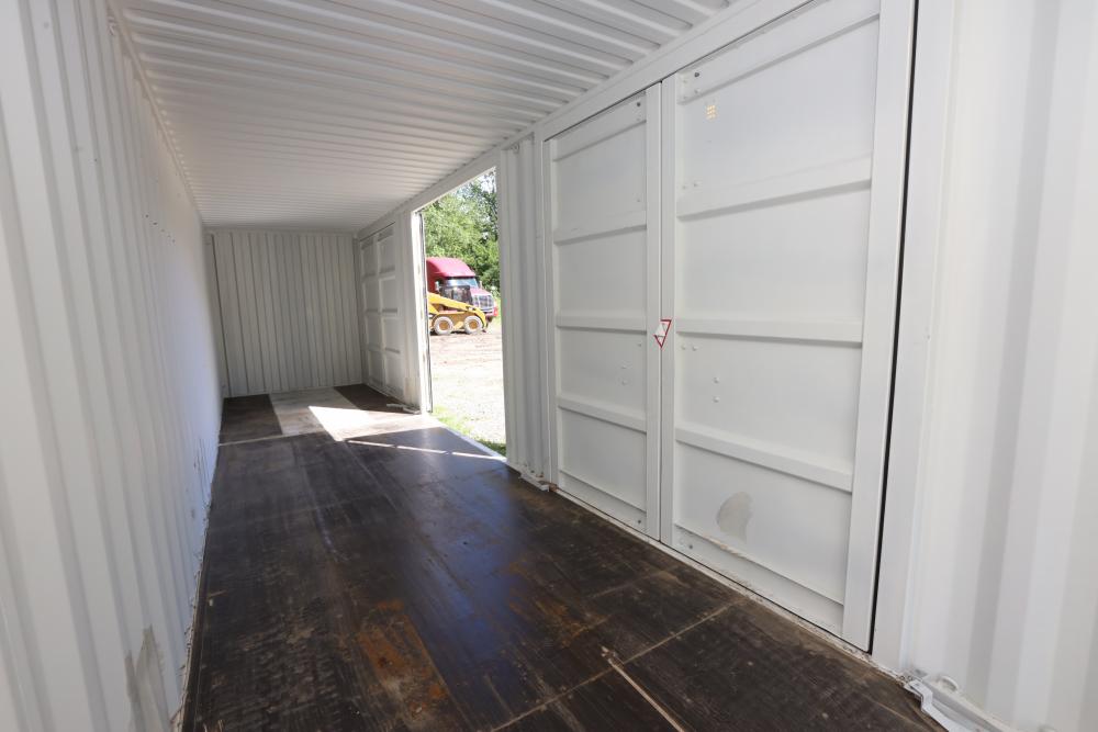 New 2024 40' High cube multi-door container, four side doors, one end door, side forklift pockets.