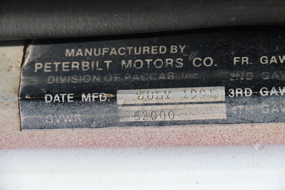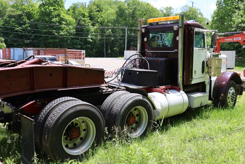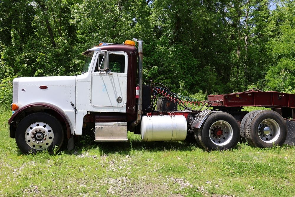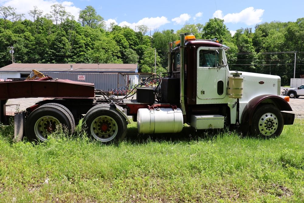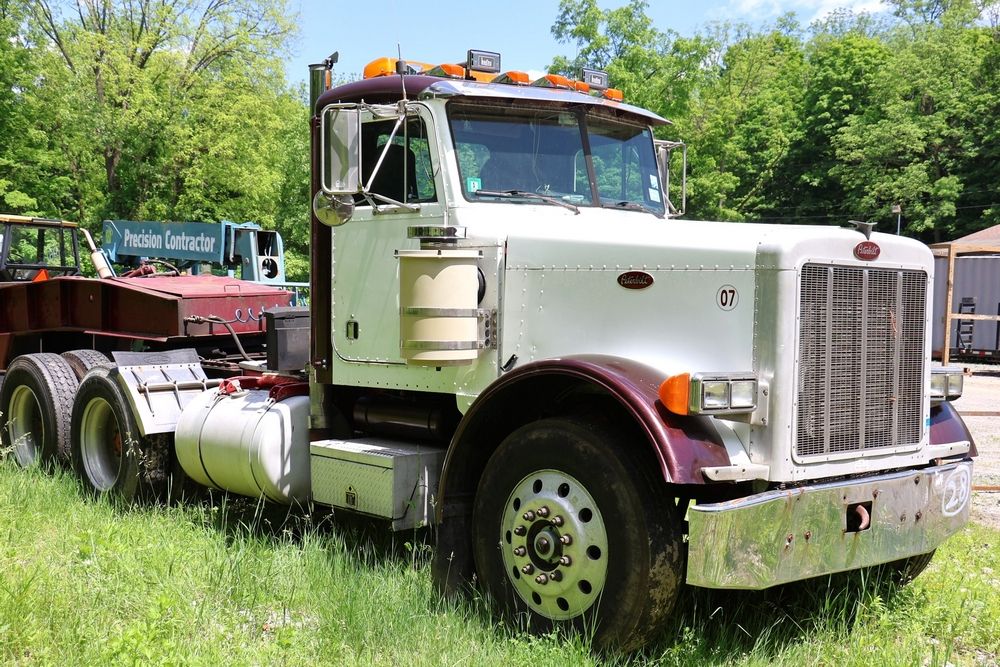 1992 Peterbilt tractor with Cat 3406B engine VIN: 1XP-5DB9X-6NN31830 with manual Eaton Fuller Roadranger transmission with lo and lo-lo, wet line to run dump and low boy trailers, 46000 lb. rears, cloth interior, wood grain trim, air ride seat, air brakes, heat & A/C, AM/FM radio, CB radio, Odometer reading 215089. Runs and drives. Title available.