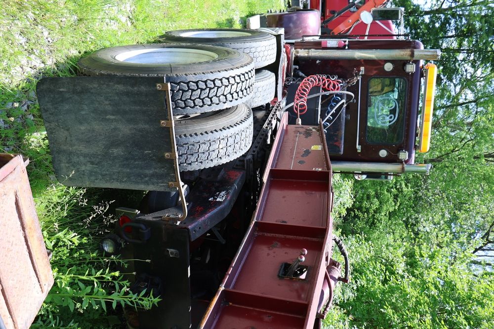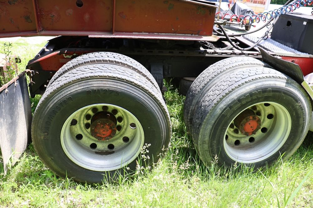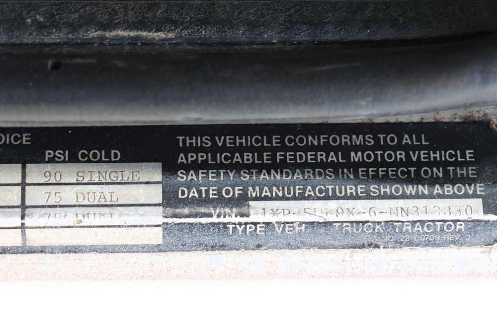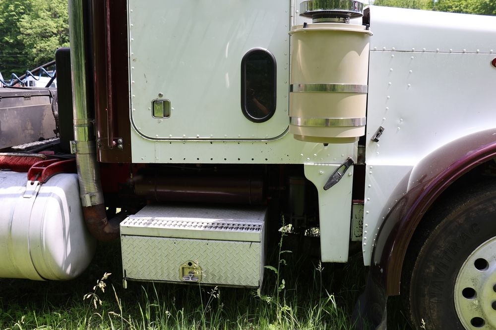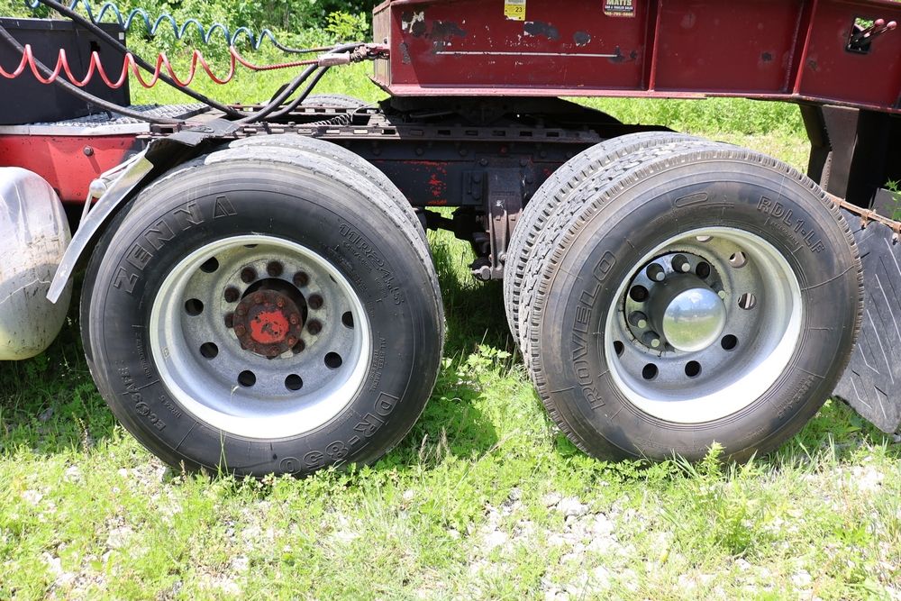 1992 Peterbilt tractor with Cat 3406B engine VIN: 1XP-5DB9X-6NN31830 with manual Eaton Fuller Roadranger transmission with lo and lo-lo, wet line to run dump and low boy trailers, 46000 lb. rears, cloth interior, wood grain trim, air ride seat, air brakes, heat & A/C, AM/FM radio, CB radio, Odometer reading 215089. Runs and drives. Title available.