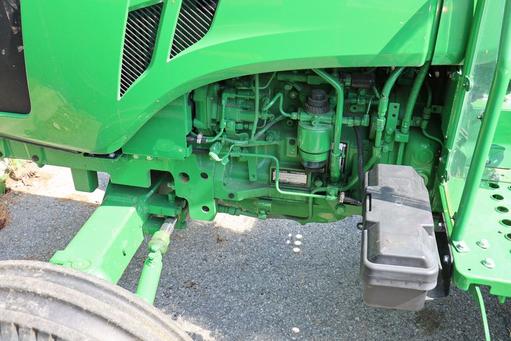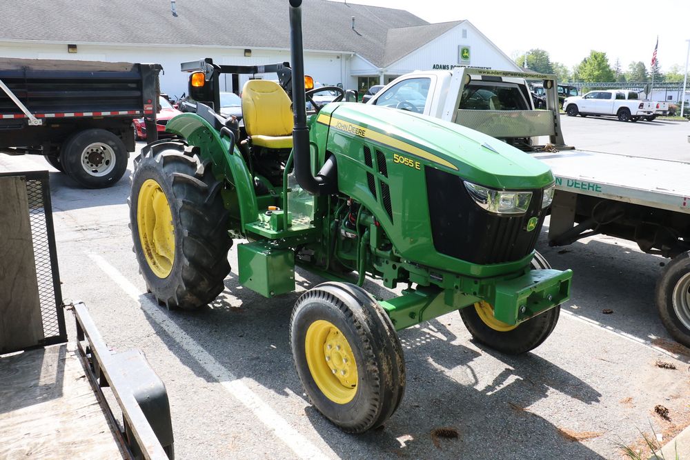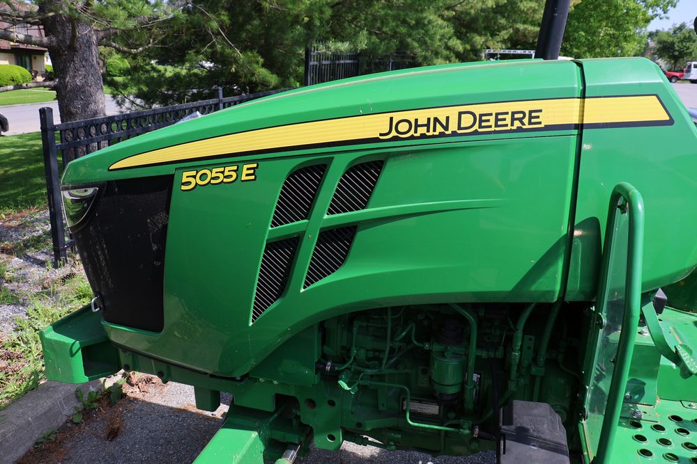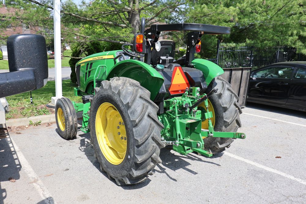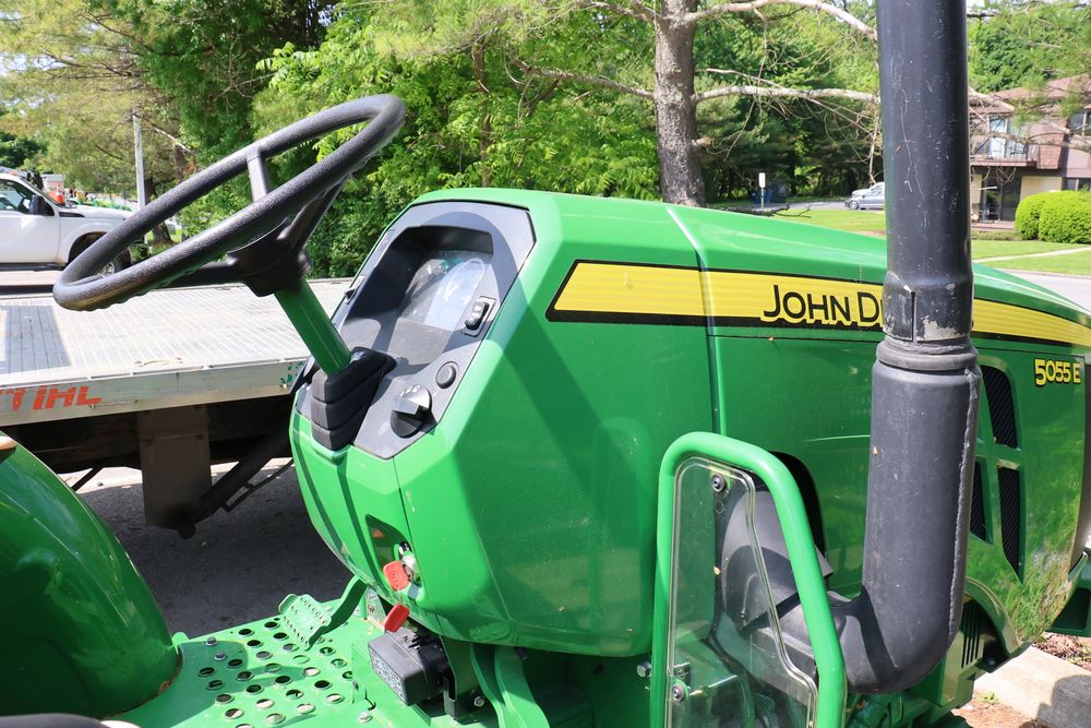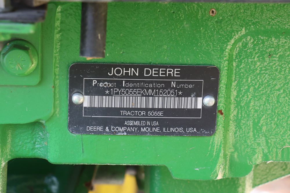 2021 John Deere tractor model 5055E with a 2.9L 3 cyl 59 hp diesel engine with Galaxy 14.9-28 Agritrac II rear tires, rear 3 point hitch, hour meter reading 93.9. PIN: 1PY5055EKMM152051. Runs, drives, and in good operating condition. Seller reports warranty for powertrain and emissions is valid until September 2026. Key available.