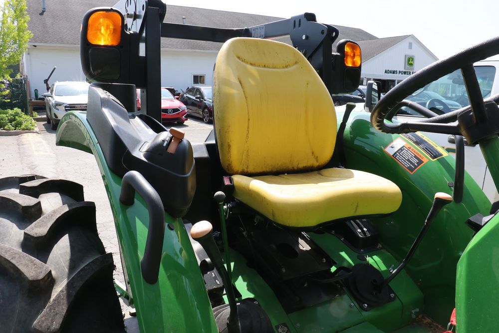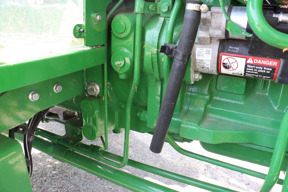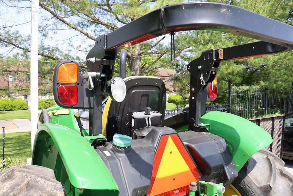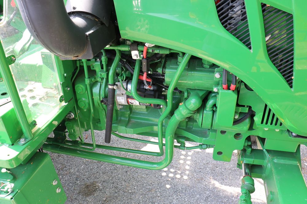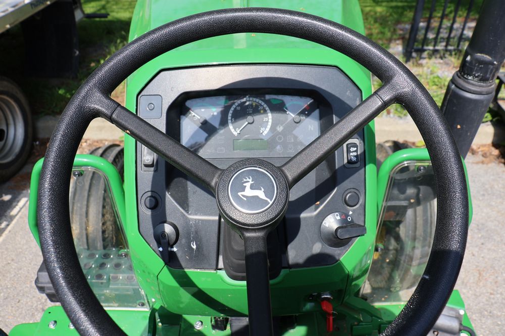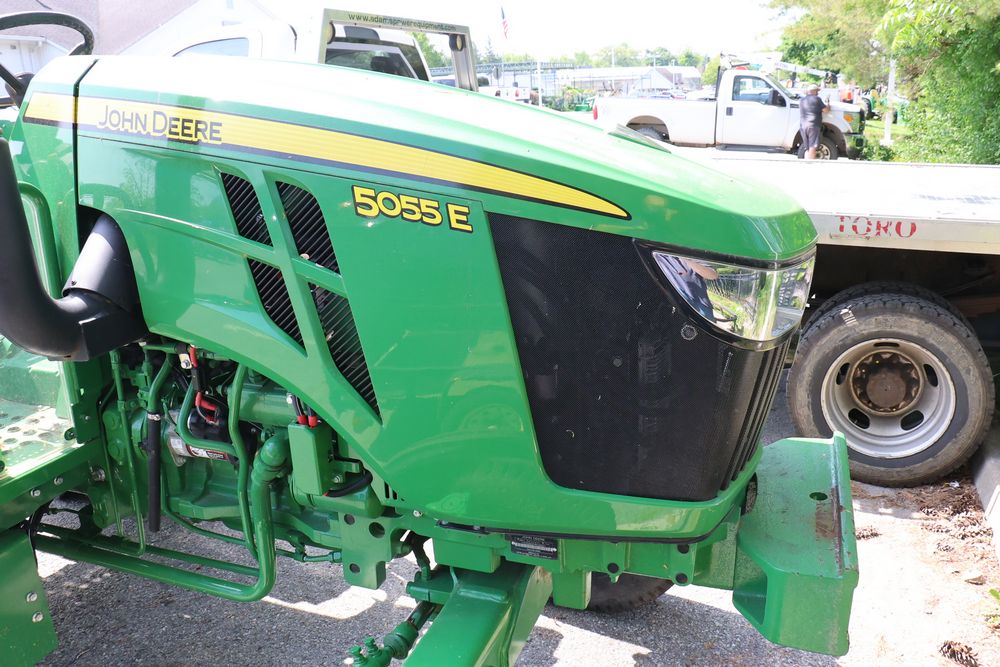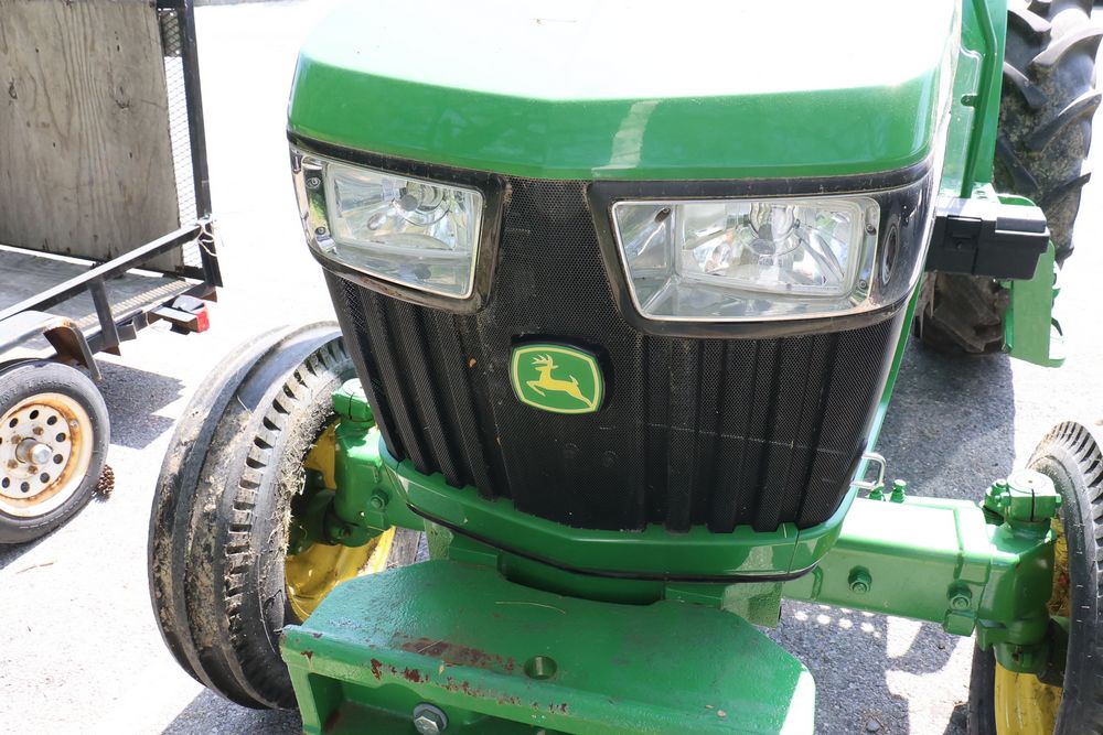 2021 John Deere tractor model 5055E with a 2.9L 3 cyl 59 hp diesel engine with Galaxy 14.9-28 Agritrac II rear tires, rear 3 point hitch, hour meter reading 93.9. PIN: 1PY5055EKMM152051. Runs, drives, and in good operating condition. Seller reports warranty for powertrain and emissions is valid until September 2026. Key available.