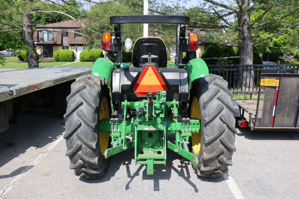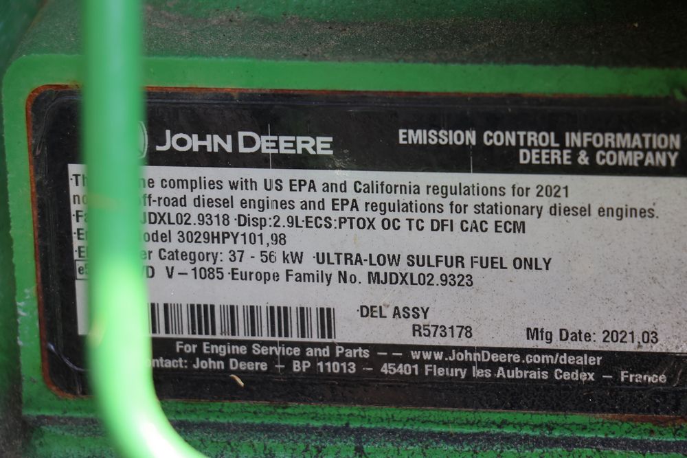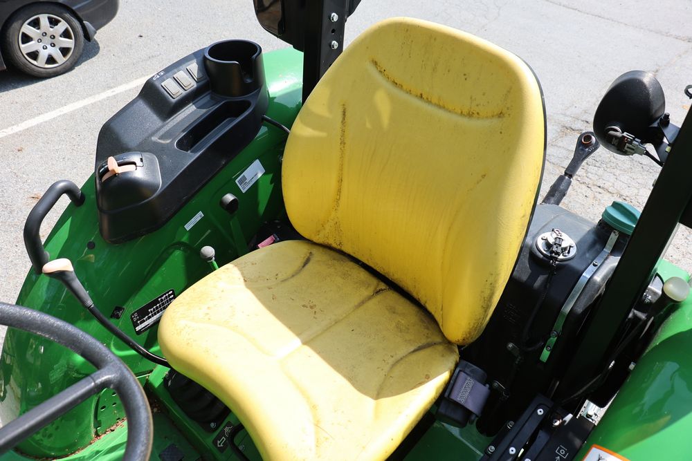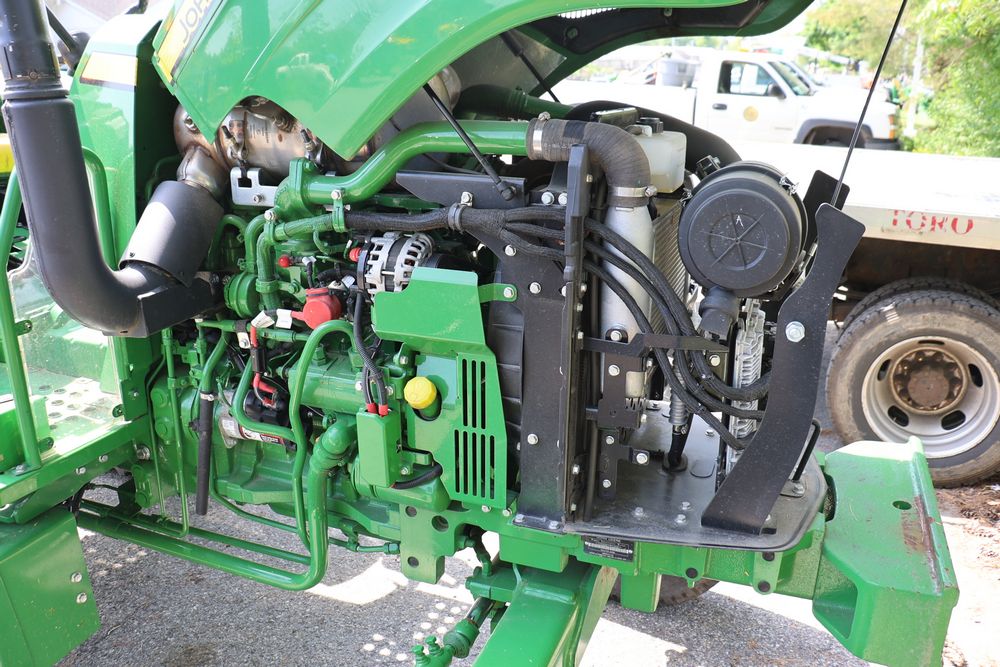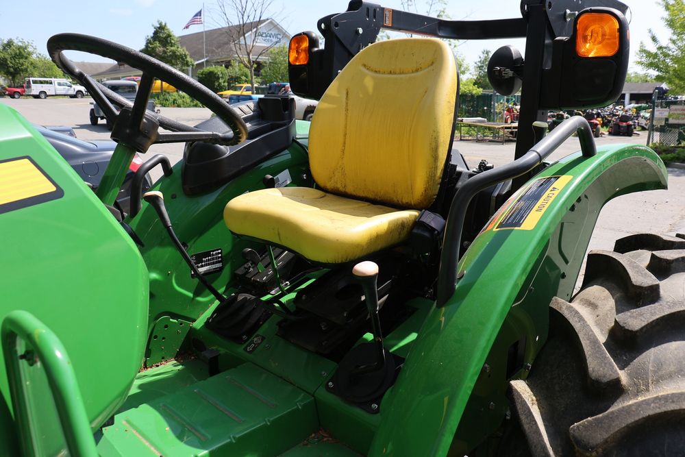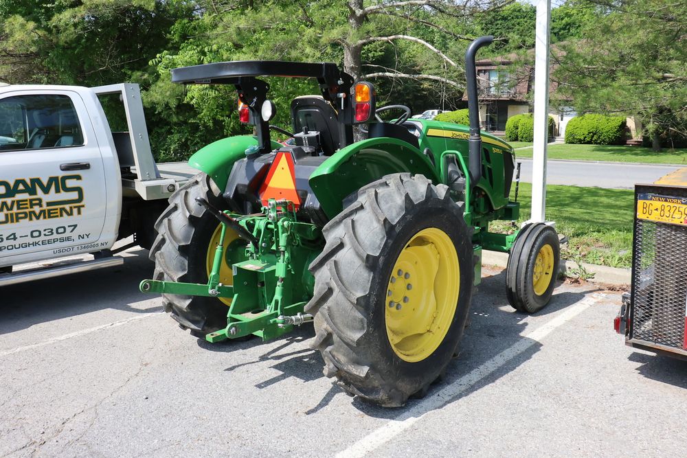 2021 John Deere tractor model 5055E with a 2.9L 3 cyl 59 hp diesel engine with Galaxy 14.9-28 Agritrac II rear tires, rear 3 point hitch, hour meter reading 93.9. PIN: 1PY5055EKMM152051. Runs, drives, and in good operating condition. Seller reports warranty for powertrain and emissions is valid until September 2026. Key available.