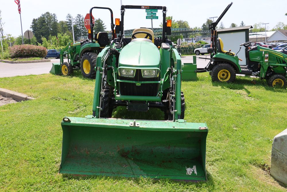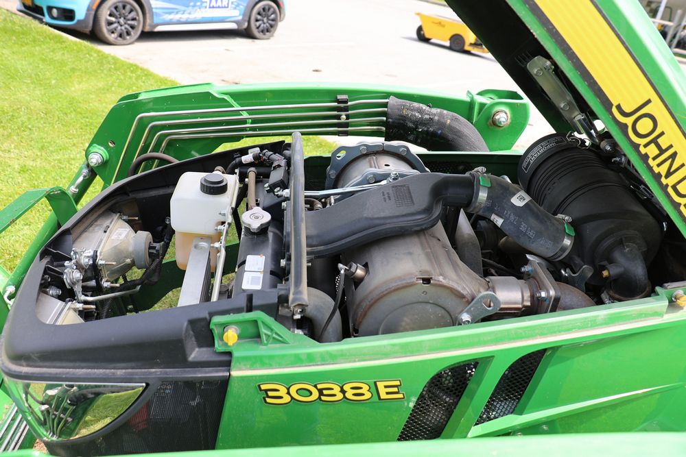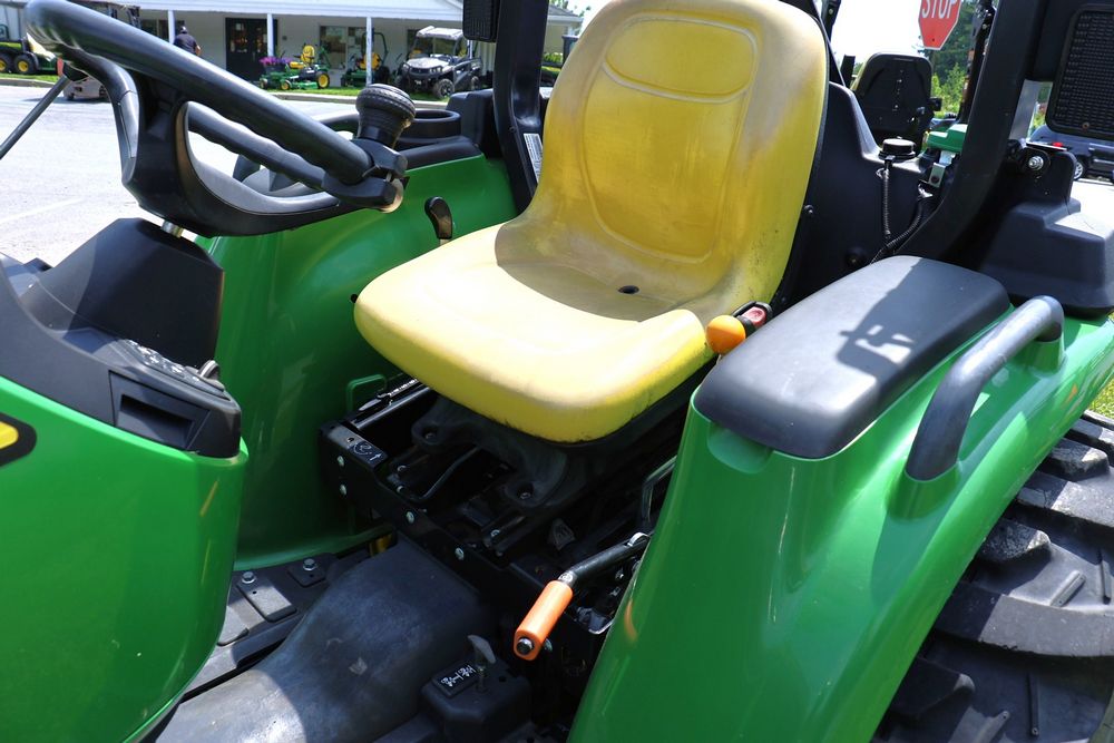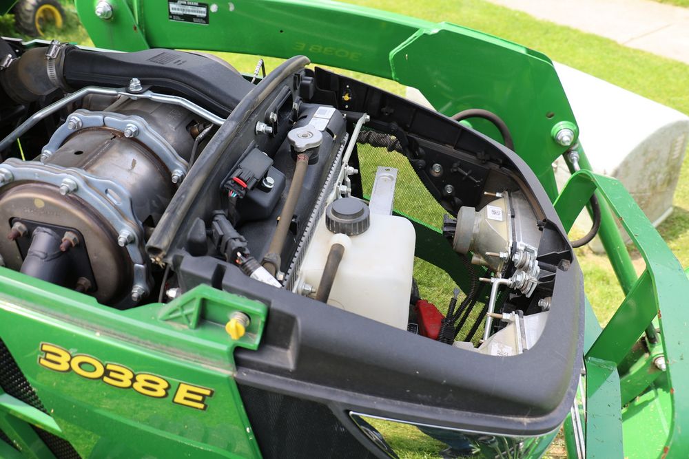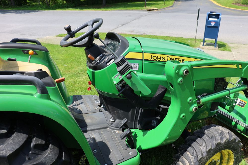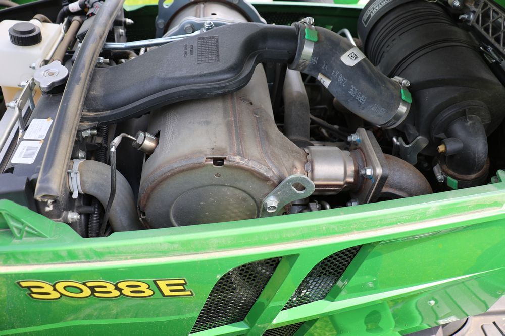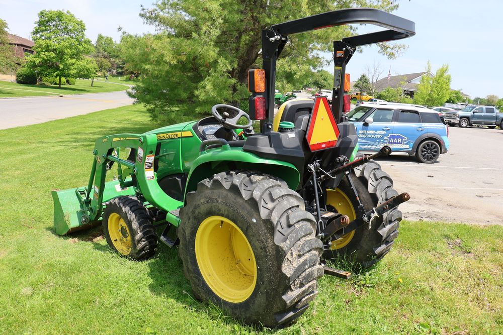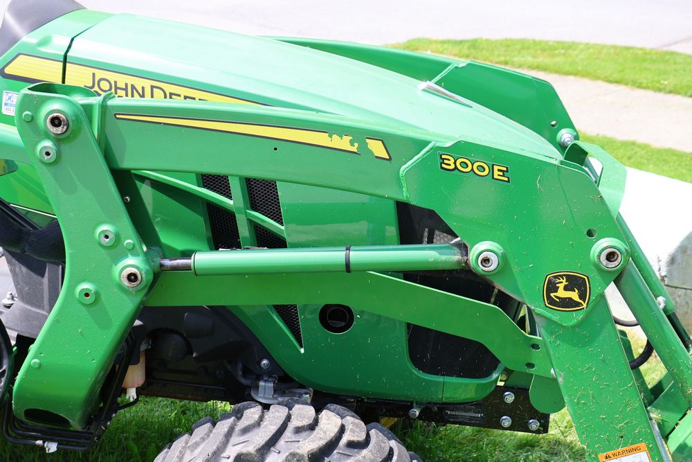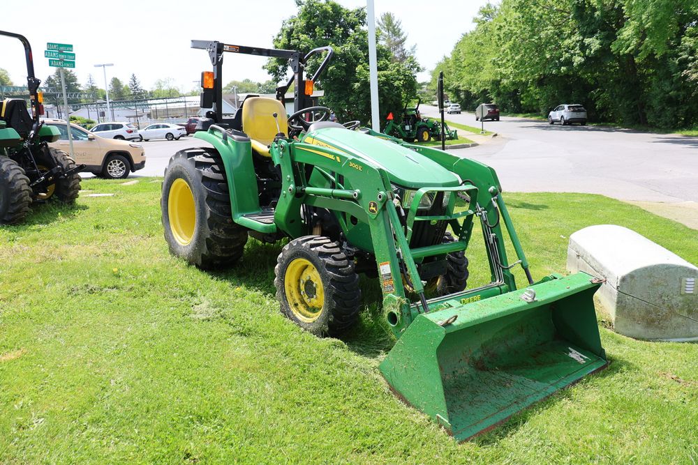 2020 John Deere tractor model 3038E with a 1.5L 3 cyl 37.1 hp diesel engine, John Deere model 300E loader with bucket, 43x16.00-20 rear tires, rear 3 point hitch. Hour meter reading 216.5. PIN: 1LV3038EJJJ122958. Runs, drives, and in good operating condition. Seller reports emissions warranty valid until 1/16/2025, powertrain warranty valid until 1/14/2026. Key available.