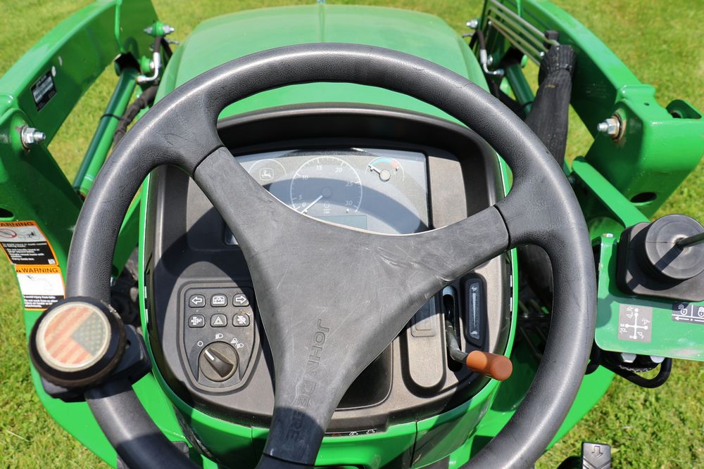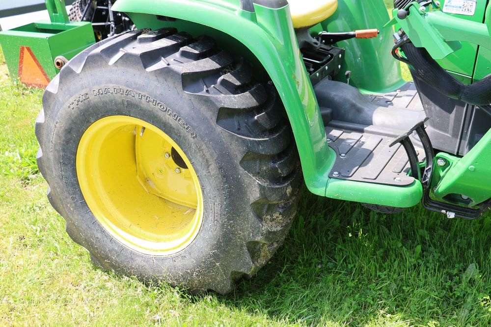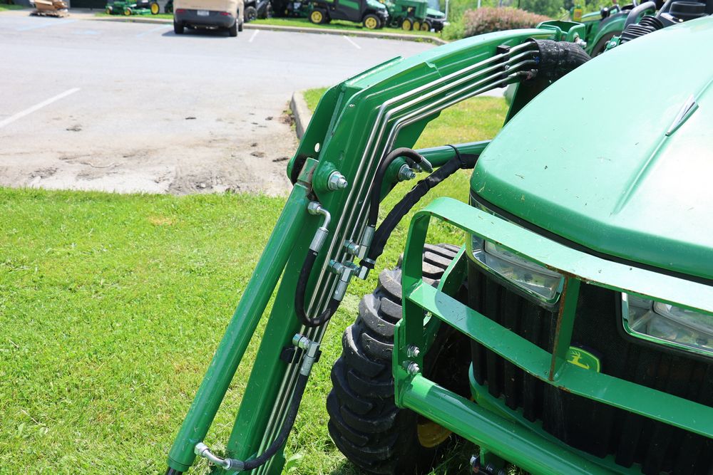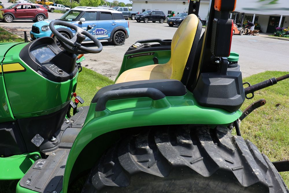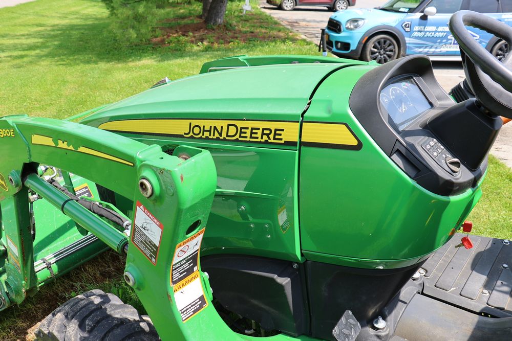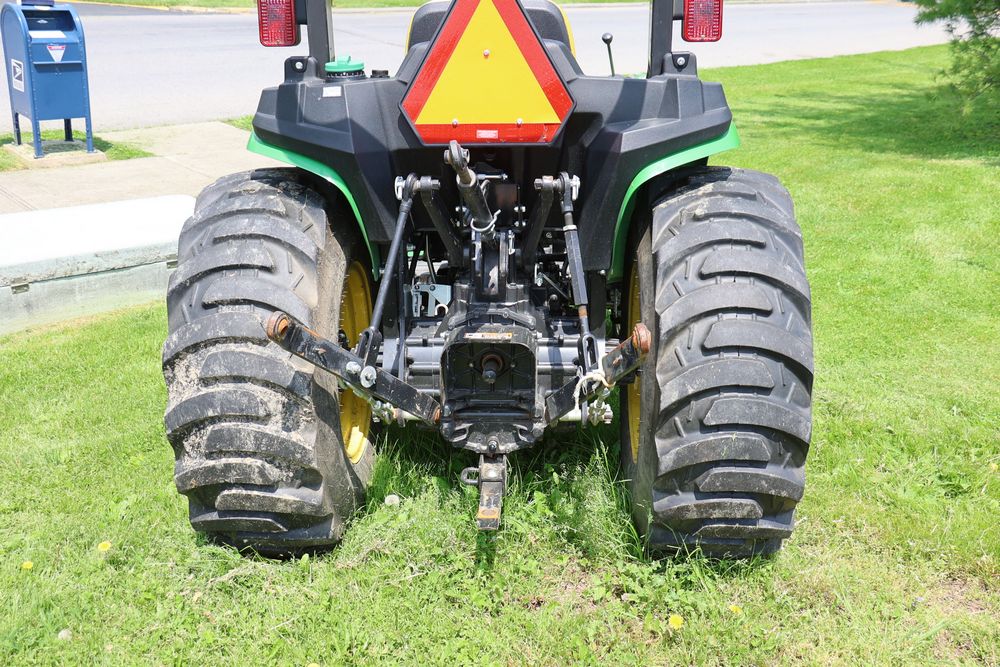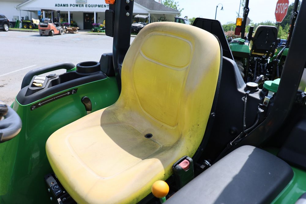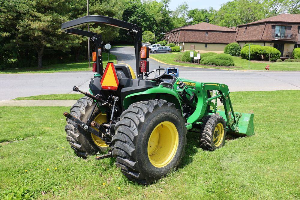 2020 John Deere tractor model 3038E with a 1.5L 3 cyl 37.1 hp diesel engine, John Deere model 300E loader with bucket, 43x16.00-20 rear tires, rear 3 point hitch. Hour meter reading 216.5. PIN: 1LV3038EJJJ122958. Runs, drives, and in good operating condition. Seller reports emissions warranty valid until 1/16/2025, powertrain warranty valid until 1/14/2026. Key available.