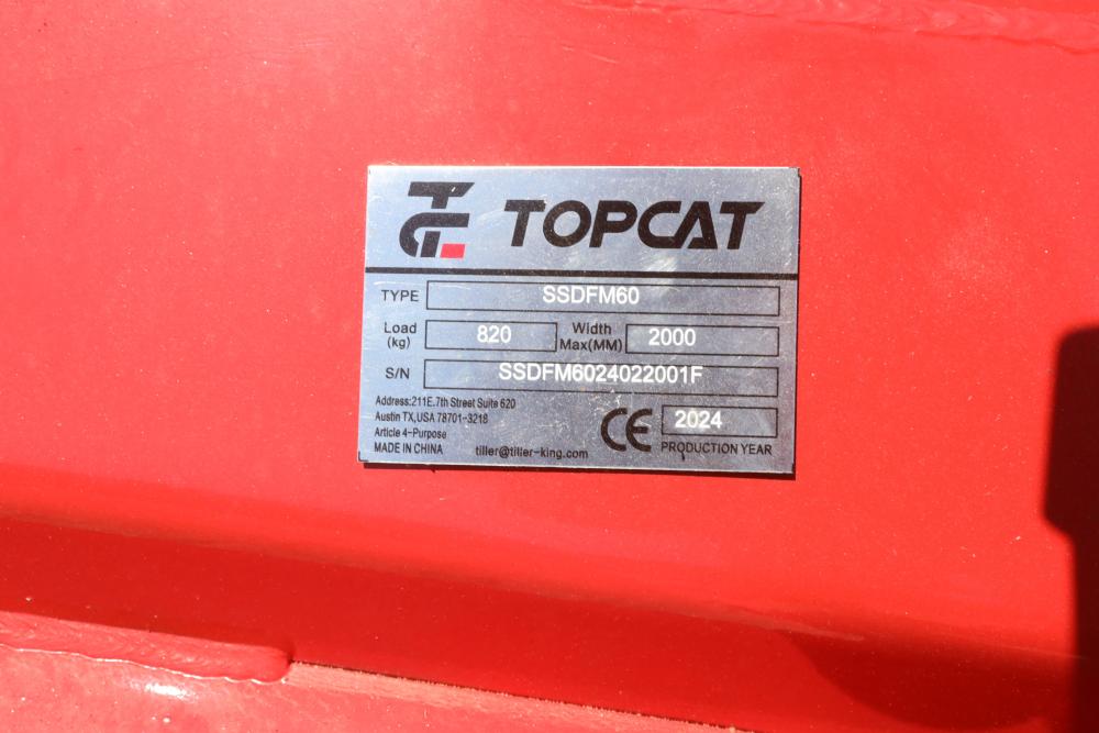 New 2024 TOPCAT hydraulic Skid Steer mulcher model SSDFM60 with 60" working width. S/N SSDFM6024022001F. Less than one hour.