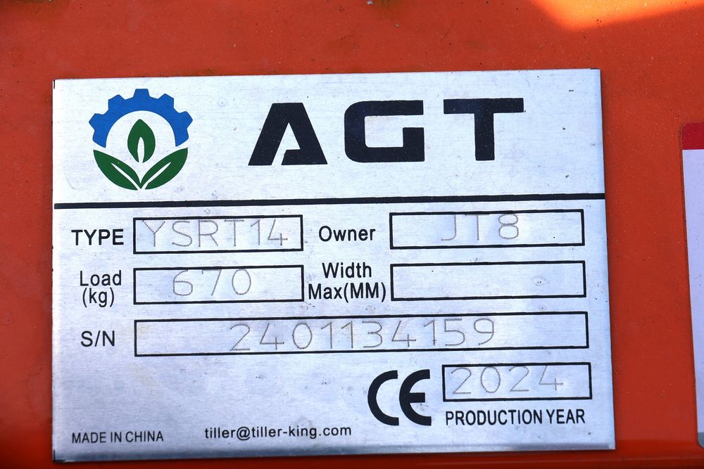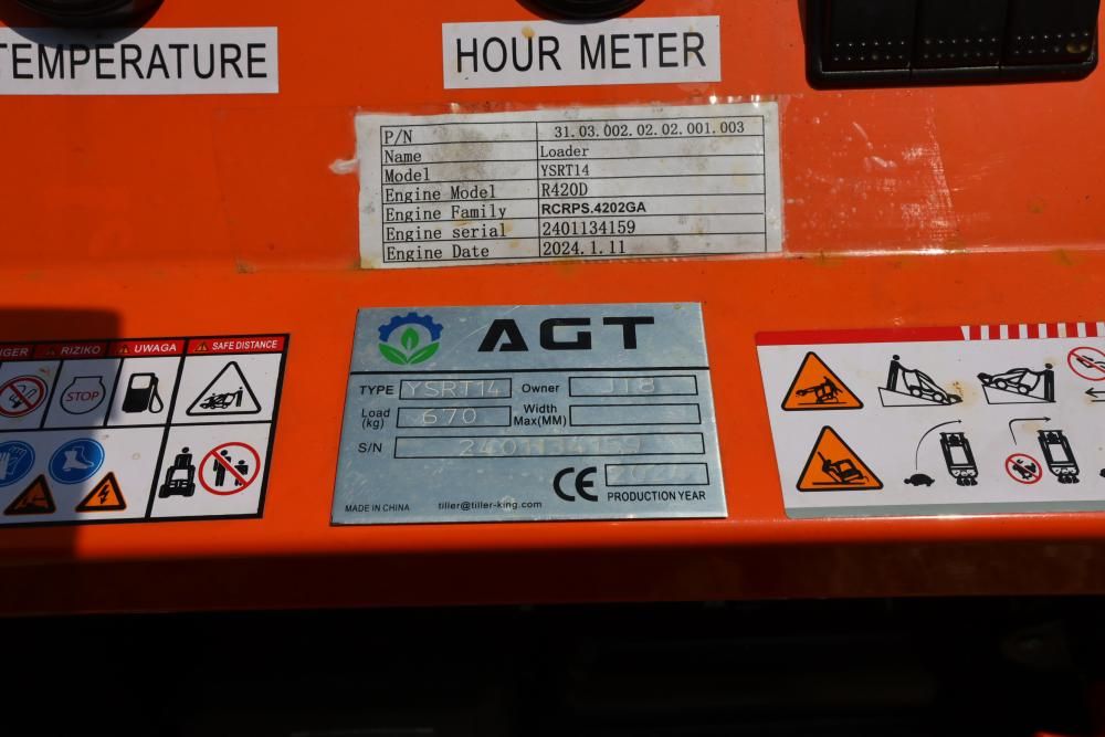 New 2024 AGT YSRT14 Skid Steer ride on loader with 420CC engine, hand controls and front facing light, and hydraulic hook ups. S/N 2401134159. Less than one hour.