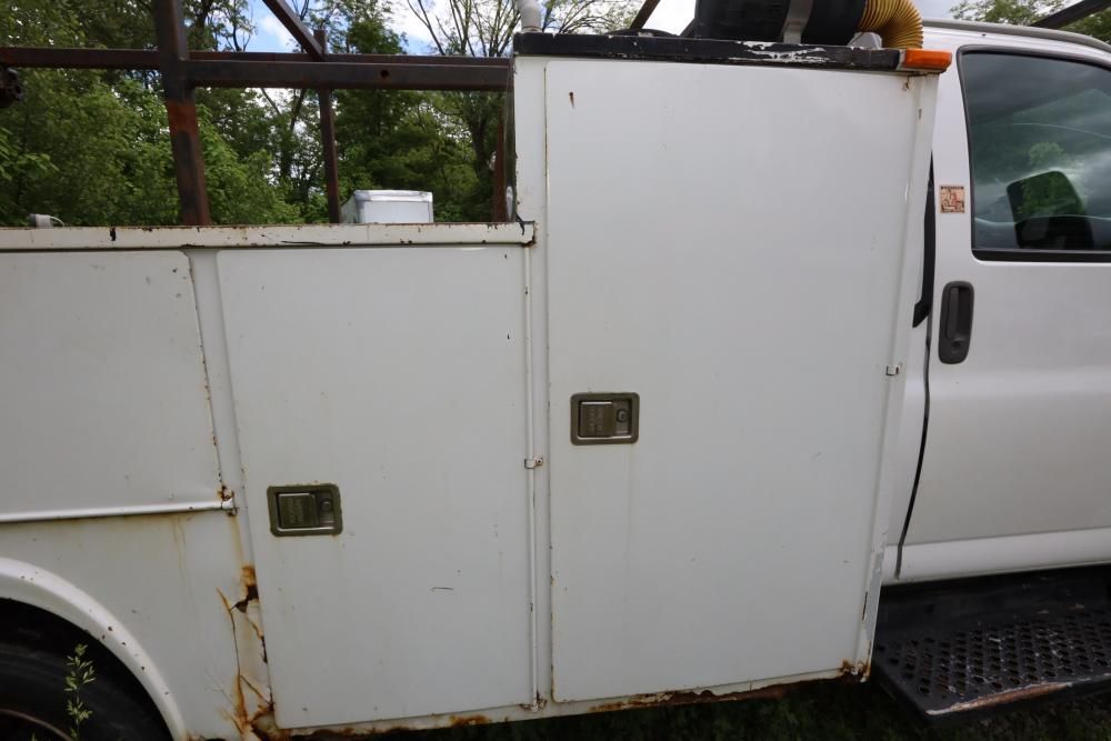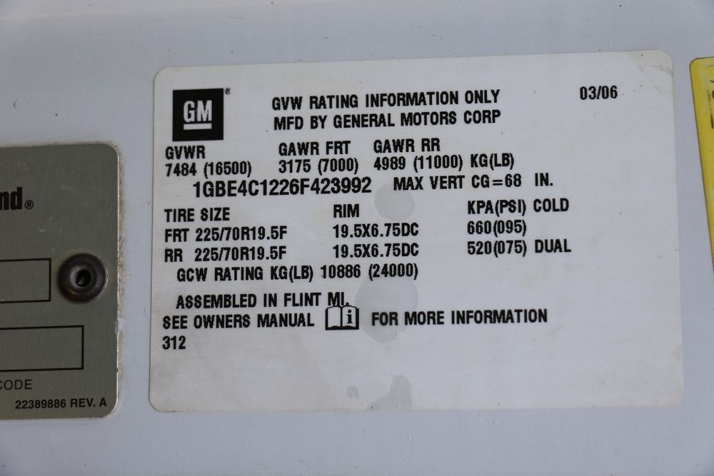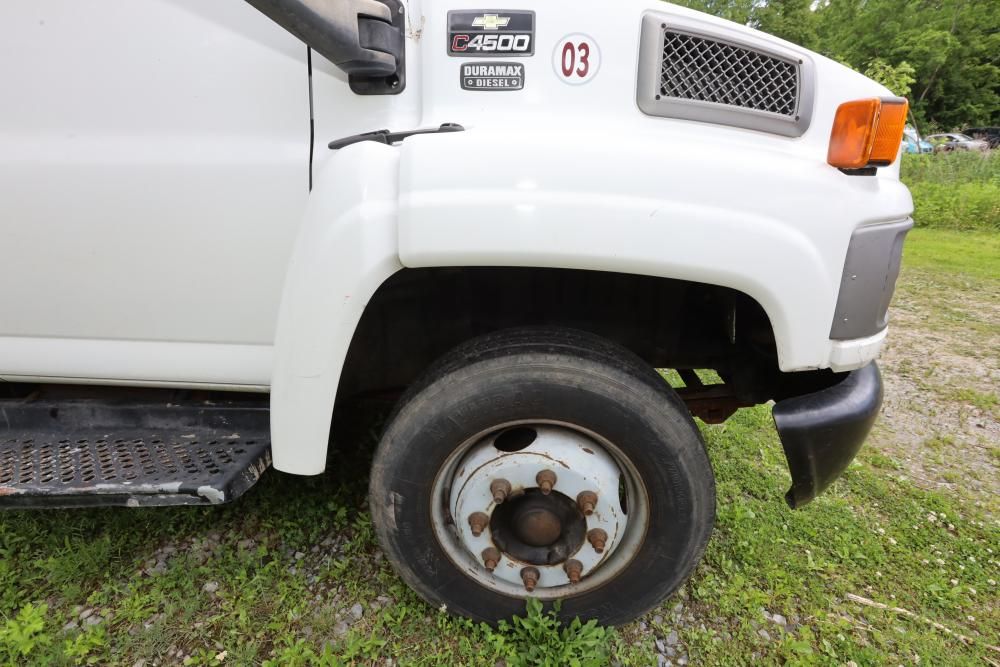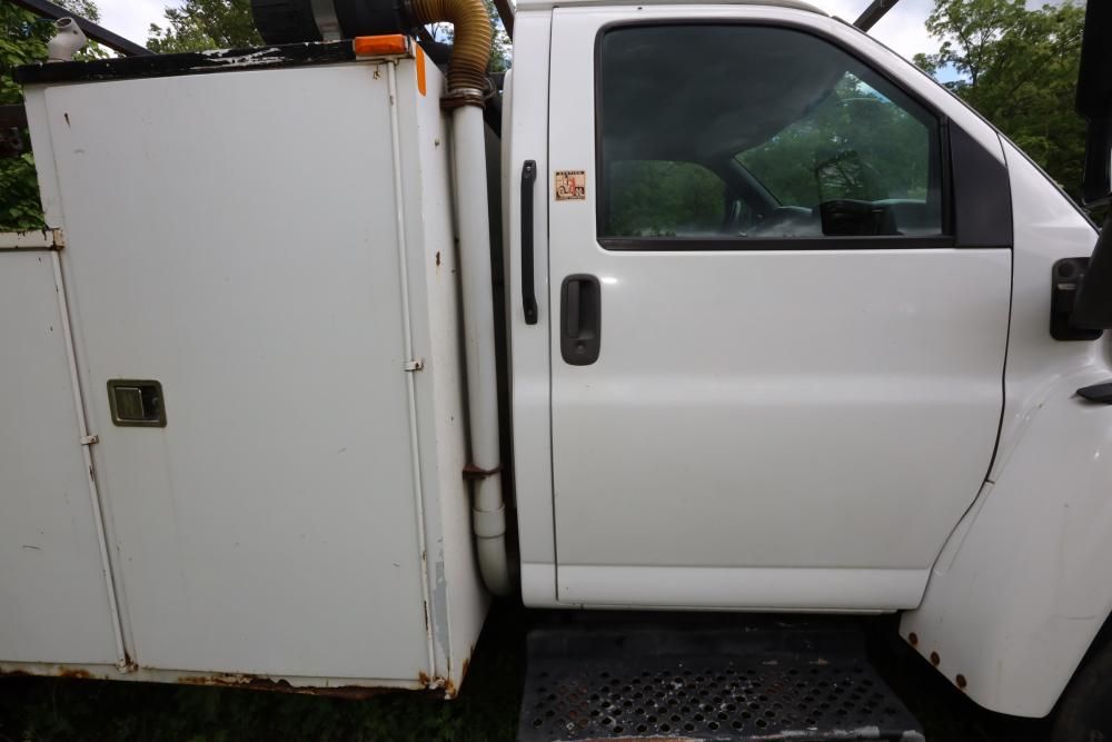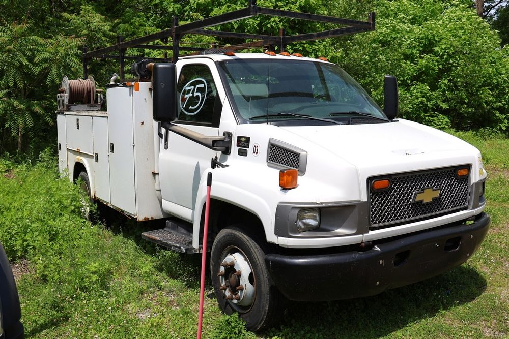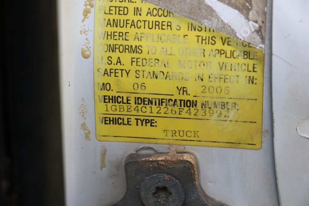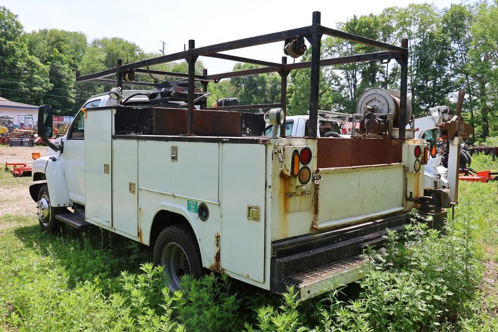 2006 Chevrolet C4500 w/ 6.6 Turbo V8 Duramax diesel engine 4x2 Utility truck VIN: 1GBE4C1226F423992 w/ leather interior, AM/FM radio, heat & A/C, roof rack, 8 bed storage compartments, air hose, bumper mounted vise, diamond plate truck bed. Odometer reading 161039. Has title, bill of sale & keys.