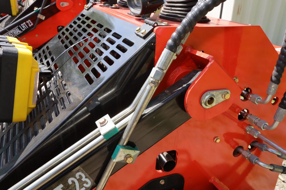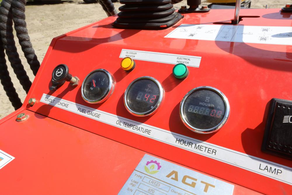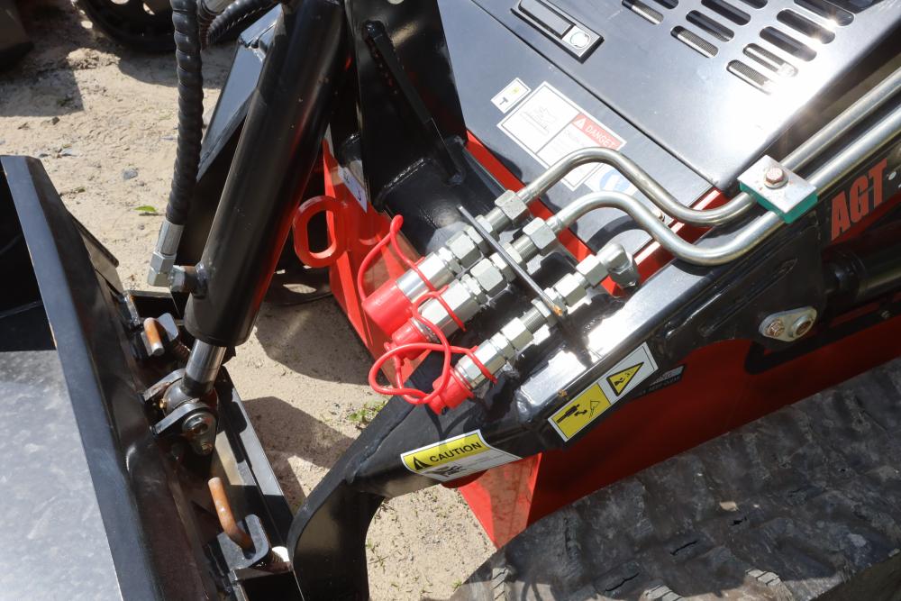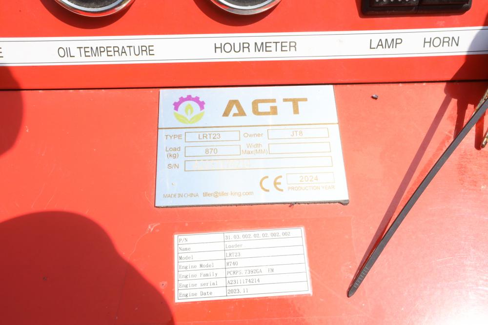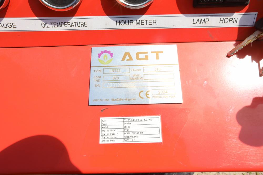 New 2024 AGT commercial ride-on Skid steer track loader model LRT23 with RATO EPA engine model R740 23Hp, 440lb lift capacity, with hand controls and front facing lights and auxiliary hydraulic lines, with less then 1 hour. Serial Number A2311080660.