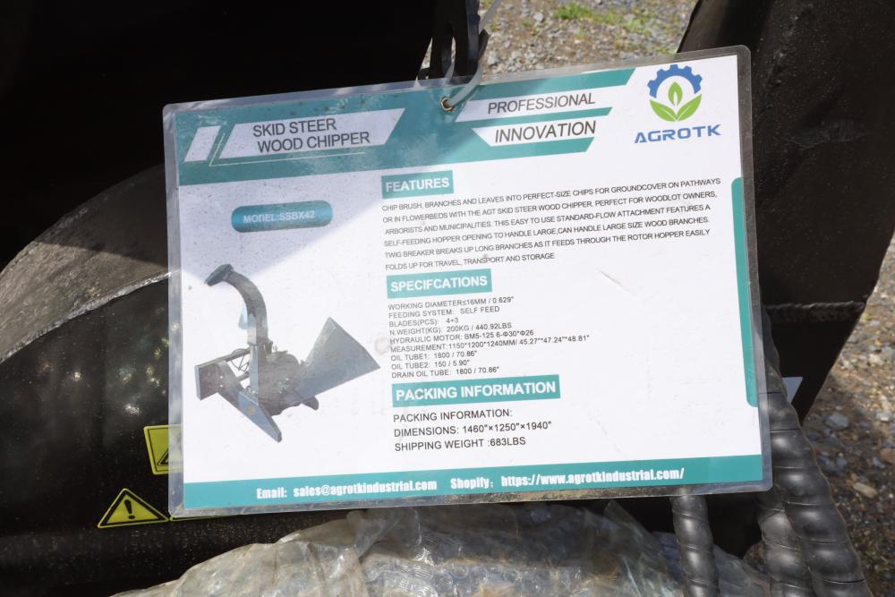 New 2024 Mower King Skid Steer Chipper model SSBX42S, to fit 18-50HP, rotor size of 21", recommended diameter 5". Serial Number SSBX42S24022002H.