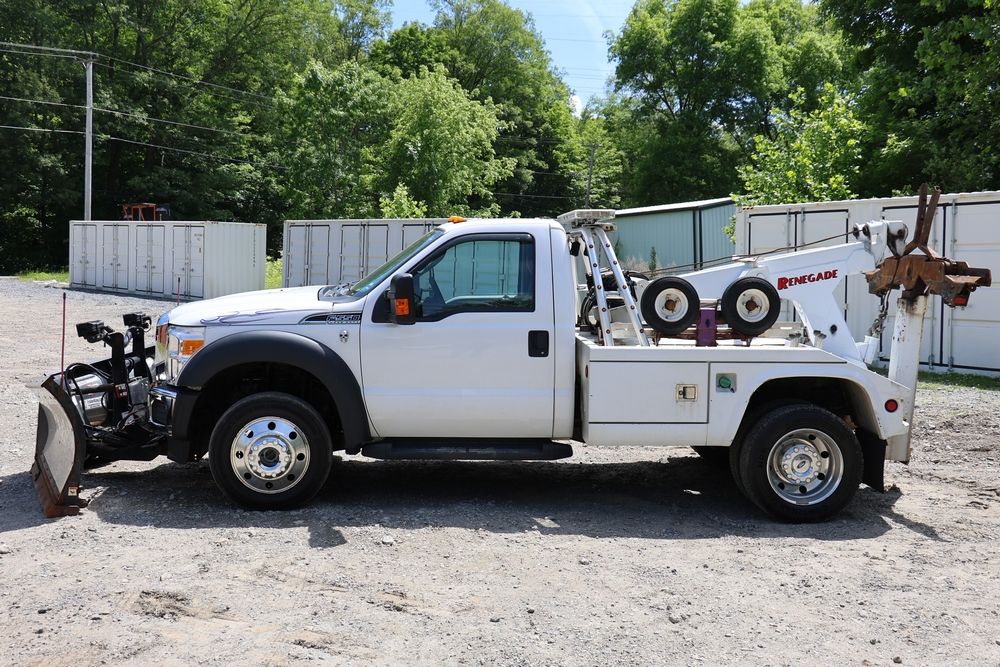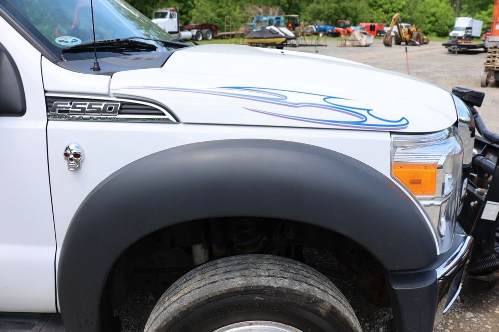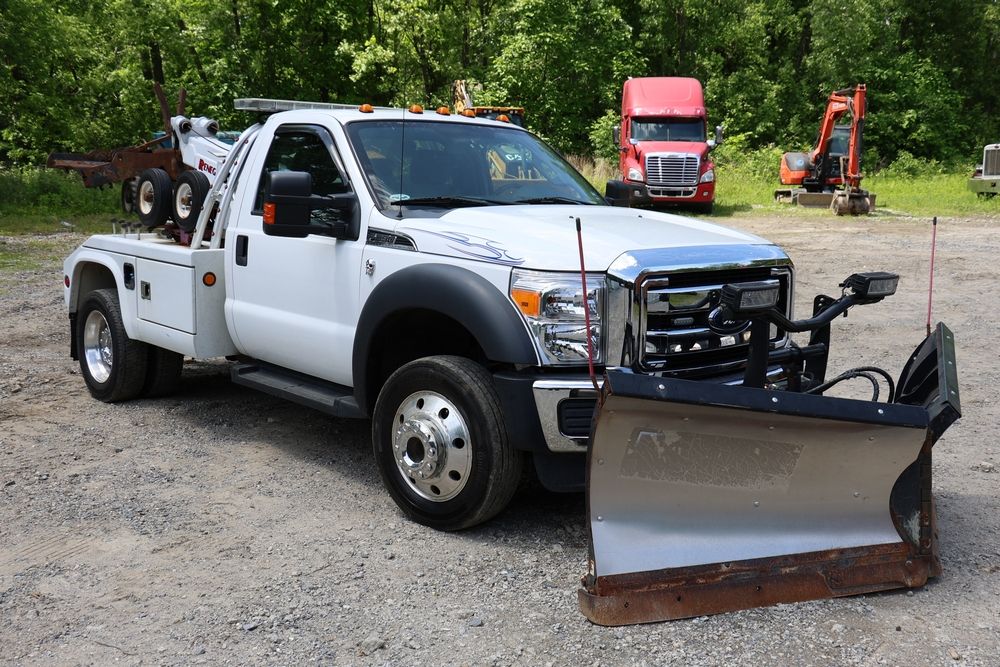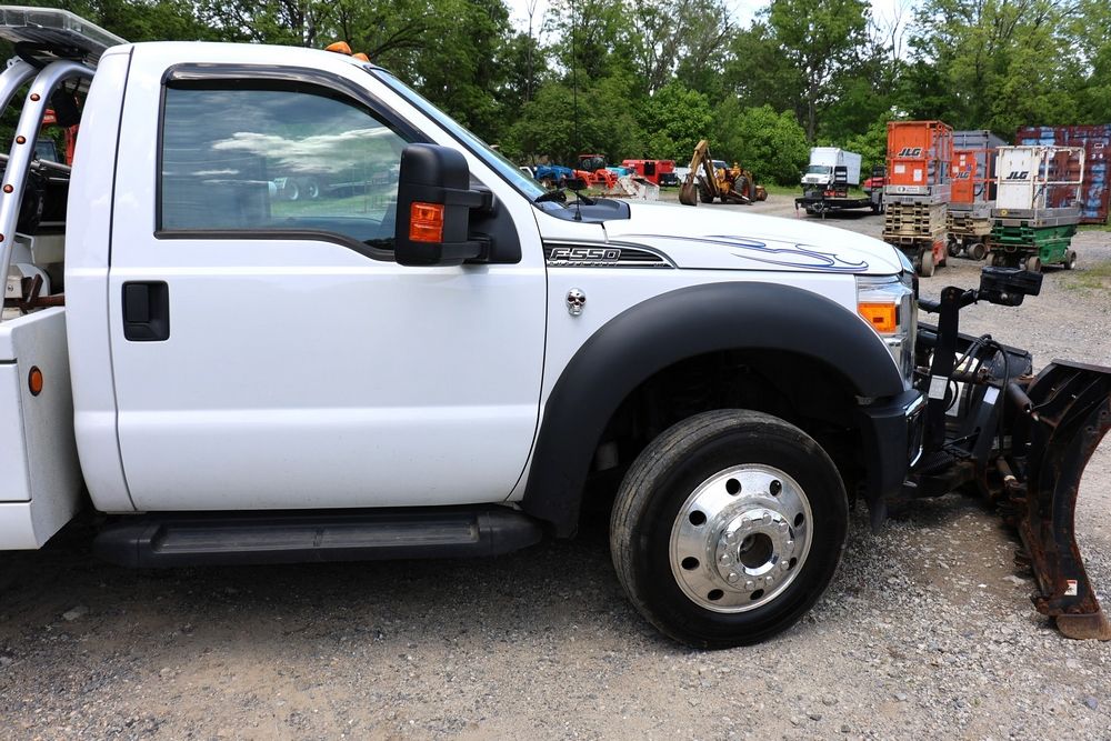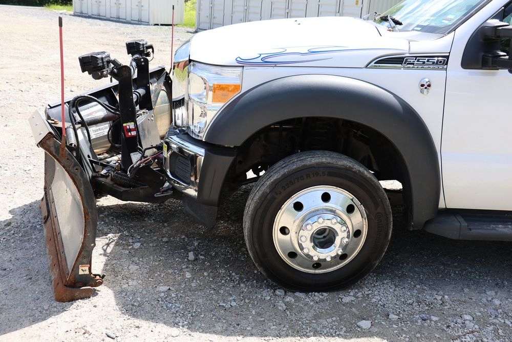 2016 Ford F-550 wrecker, 6.7L V8 diesel engine, Automatic transmission. VIN: 1FDUF5HT4GEB97985. Cloth interior, steering wheel controls, Power windows/locks/mirrors, Am/FM radio with CD player, heat & A/C, Boss 9'2" stainless DXT V-nose plow, winch with approx. 250' of cable on each side, wheel lift, light bar. Odometer reading 49951 miles. Runs, drives & operates. Has title, lien release, bill of sale & keys.