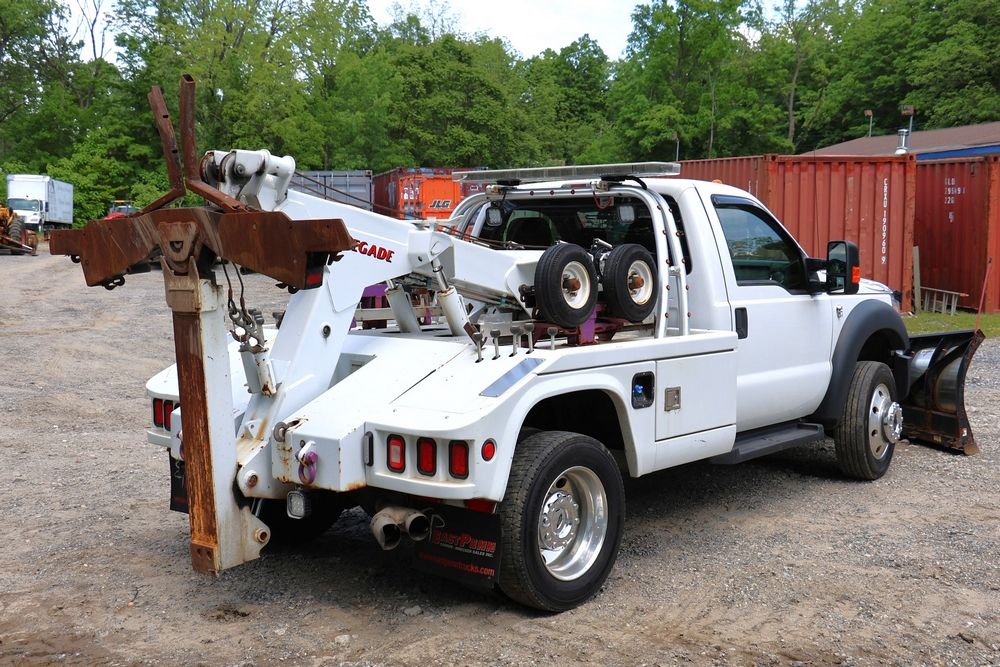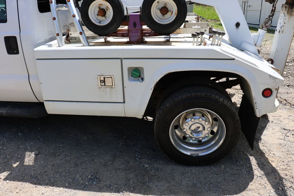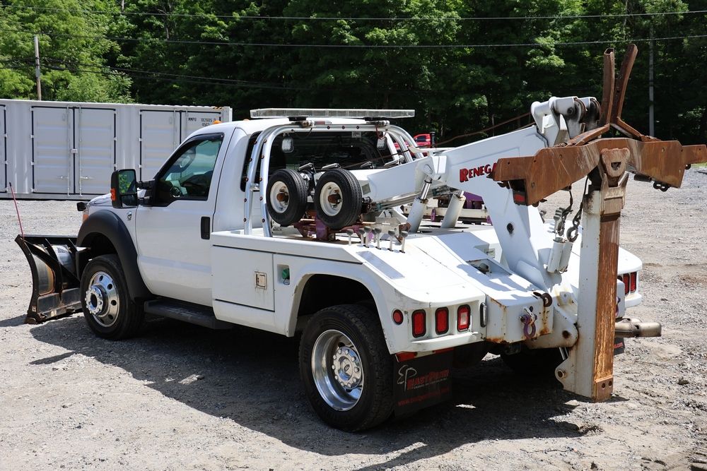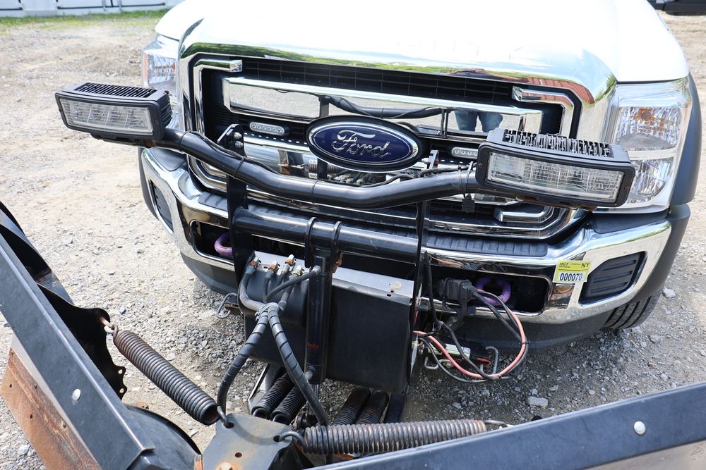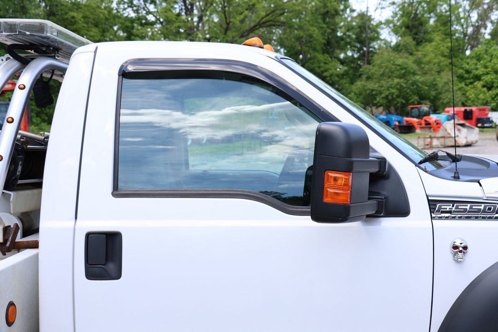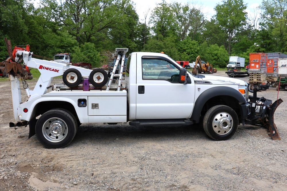 2016 Ford F-550 wrecker, 6.7L V8 diesel engine, Automatic transmission. VIN: 1FDUF5HT4GEB97985. Cloth interior, steering wheel controls, Power windows/locks/mirrors, Am/FM radio with CD player, heat & A/C, Boss 9'2" stainless DXT V-nose plow, winch with approx. 250' of cable on each side, wheel lift, light bar. Odometer reading 49951 miles. Runs, drives & operates. Has title, lien release, bill of sale & keys.