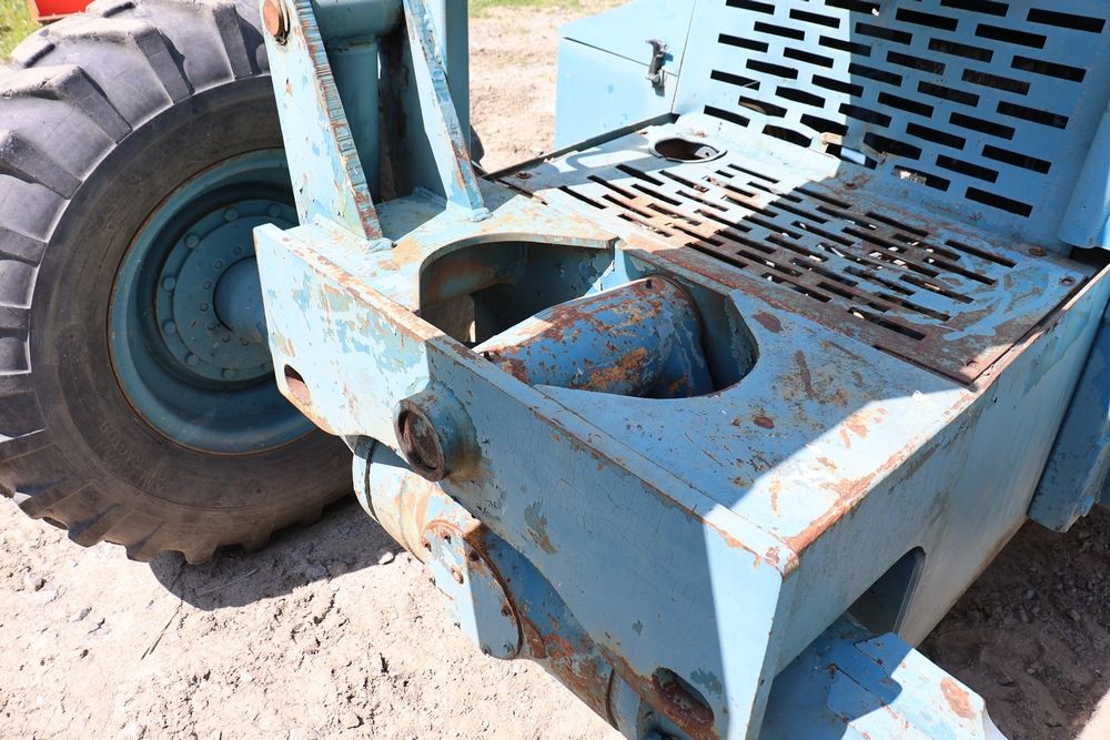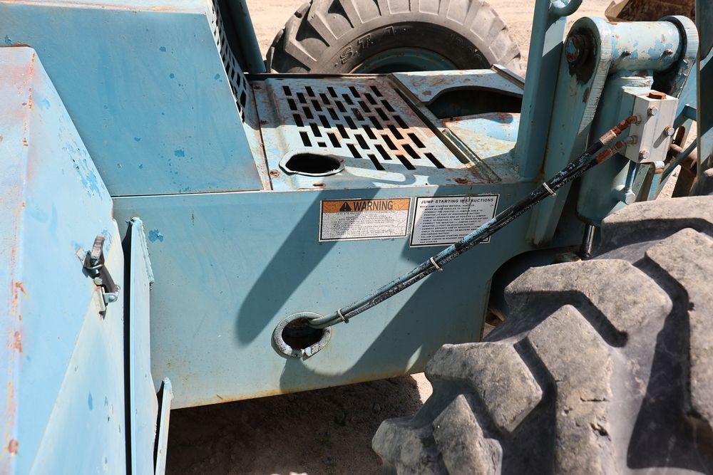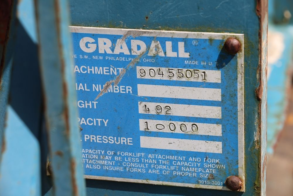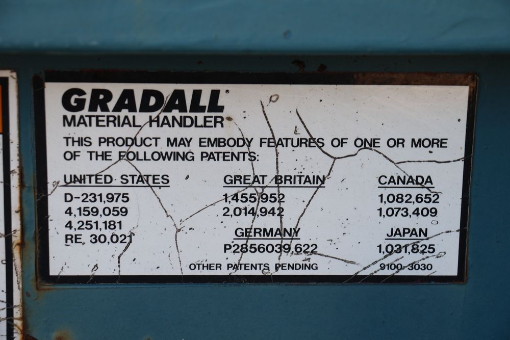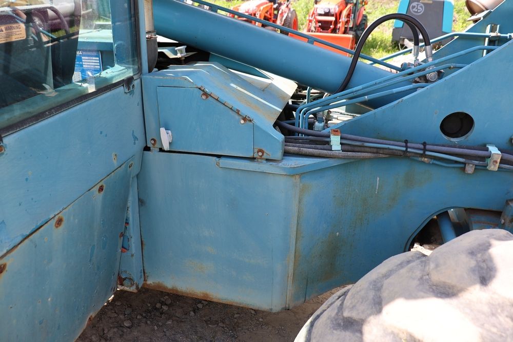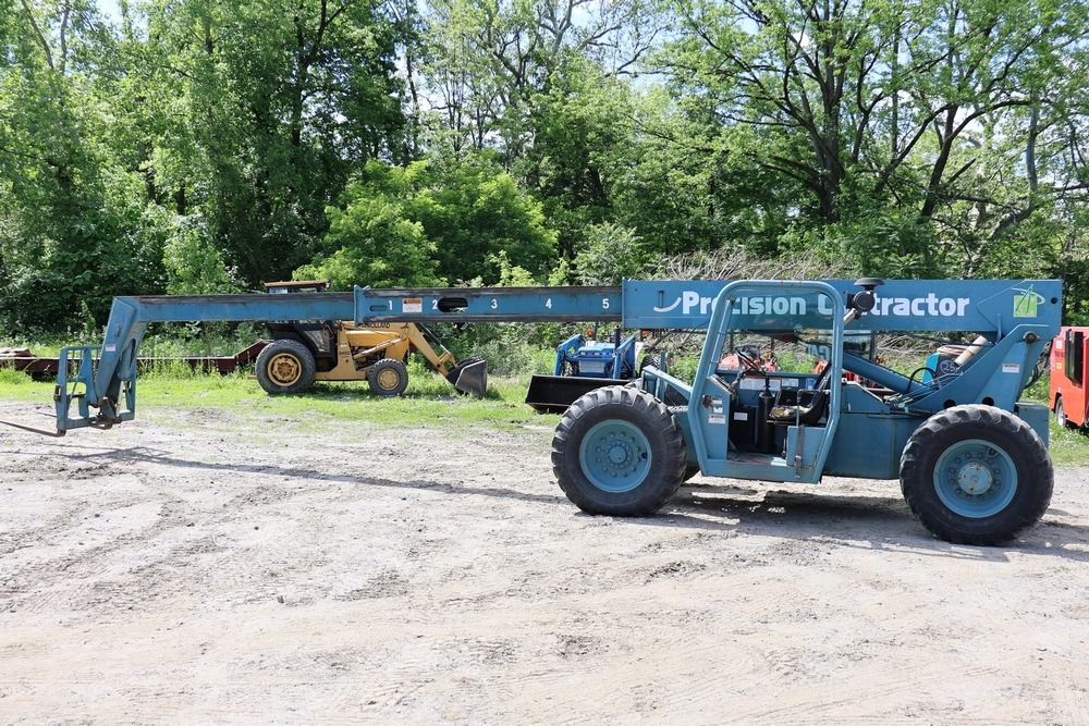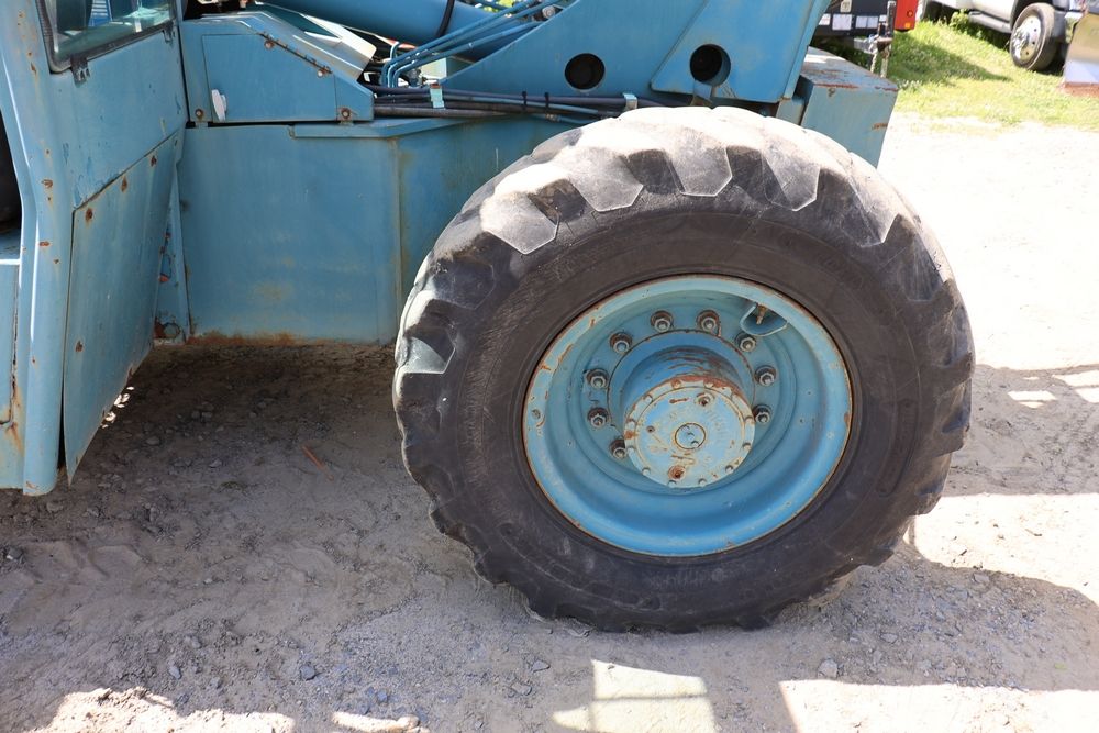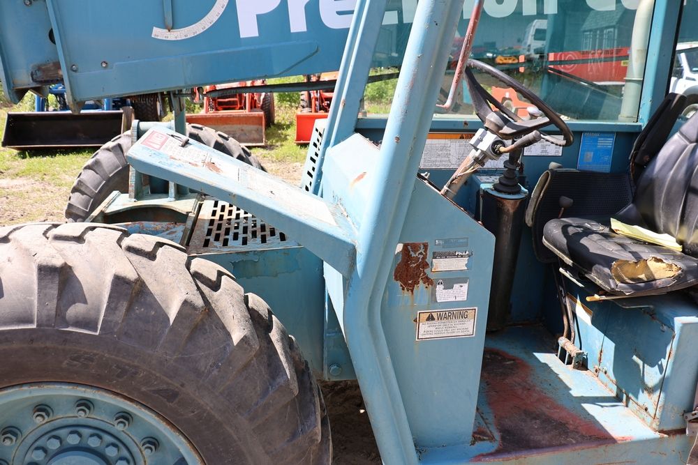 Gradall Material Handler 4x4 model 534D-6 with Cummins engine CPL NO 2361, canopy cover, hand a foot controls, Gradall fork attachment number 90455051. Hours reading 4865. Serial Number 0588489. Runs, drives, operates.