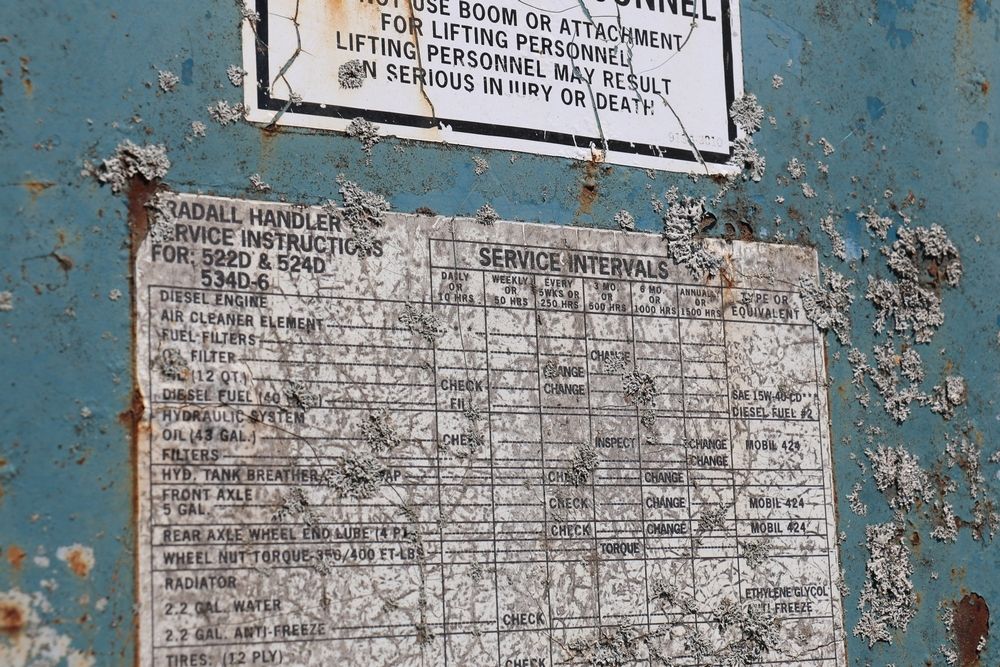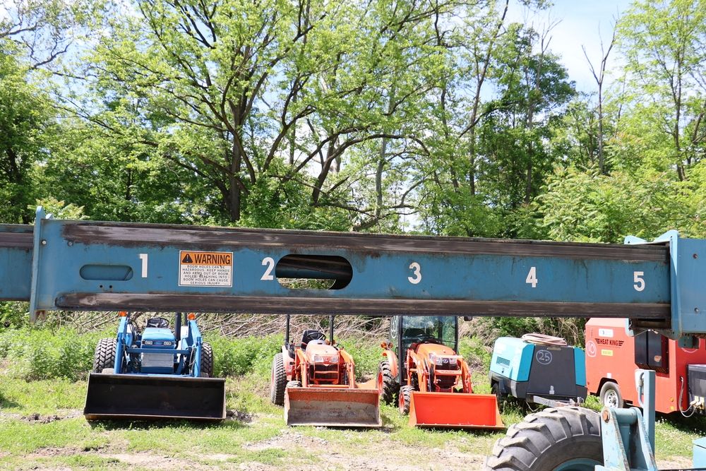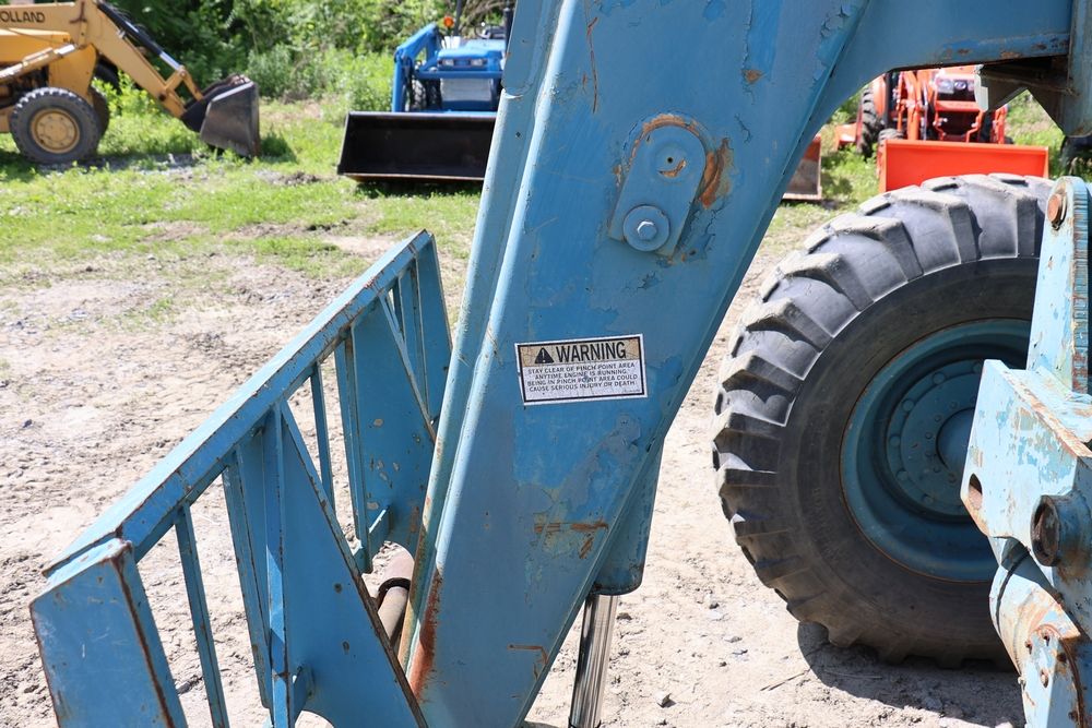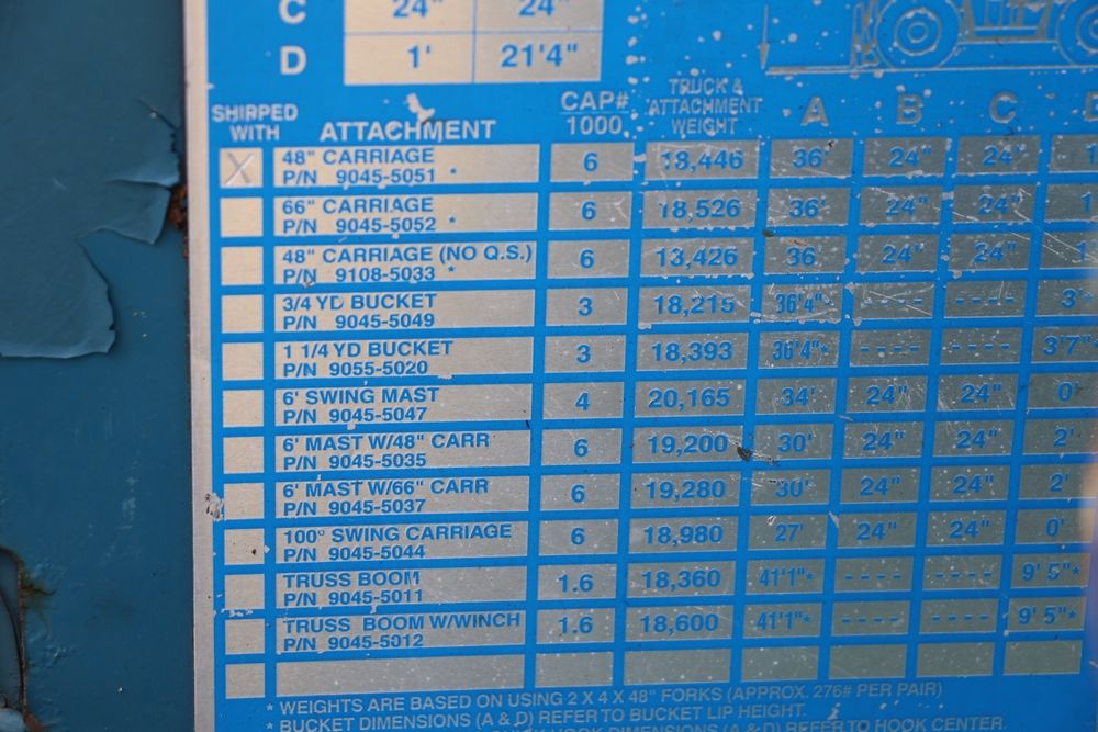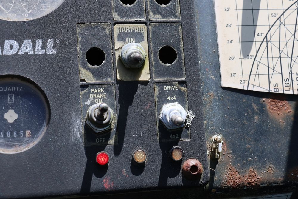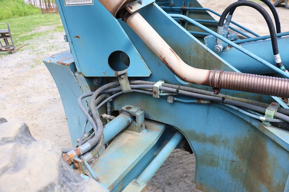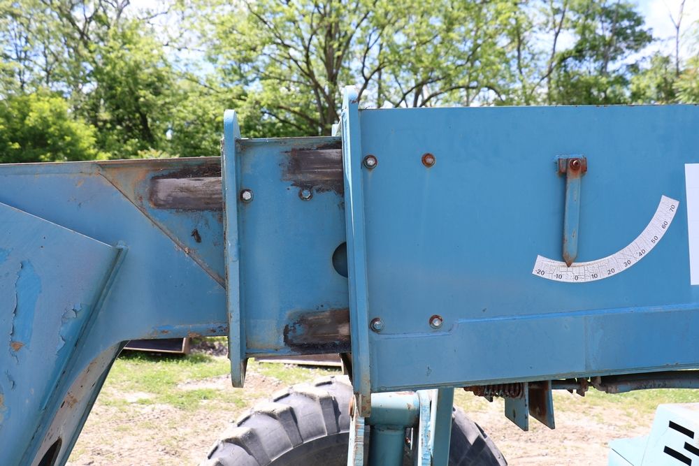 Gradall Material Handler 4x4 model 534D-6 with Cummins engine CPL NO 2361, canopy cover, hand a foot controls, Gradall fork attachment number 90455051. Hours reading 4865. Serial Number 0588489. Runs, drives, operates.