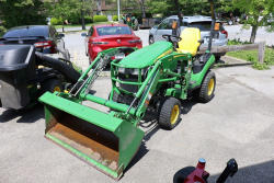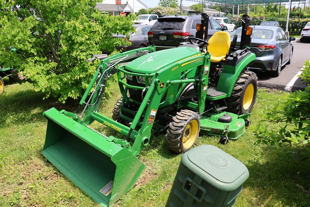 2022 John Deere tractor model 2032R with a 1.6L 3 cyl 30.6 hp diesel engine, John Deere model 220R loader with bucket, Auto Connect 72D 72" mower deck, Frontier fixed PF frame model AP12F, Marathoner 14-17.5 rear tires, hydrostatic drive, hour meter reading 117.1. PIN: 1LV2032RCMM121787. Runs, drives, and in good operating condition. Key available. Seller reports emissions warranty valid until 2/25/2027 and powertrain warranty valid until 2/25/2028.