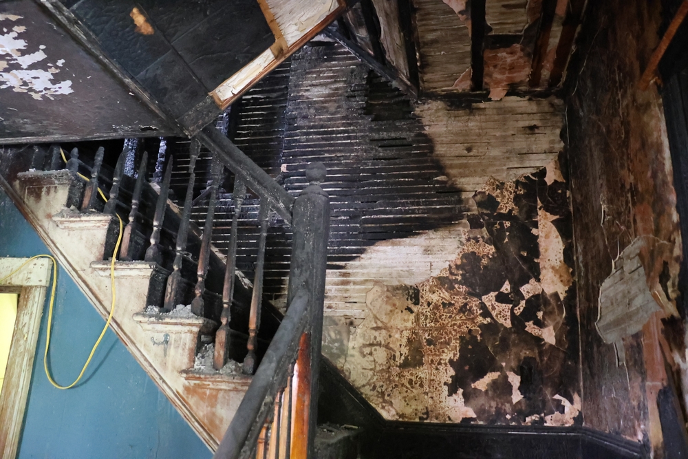 Single family residence, 2 story, Old style, built 1895+/-, 1844+/- sq. ft., 7BR/2BA, porches, detached garage. Fire damage. Corrective Action Statement required. |
