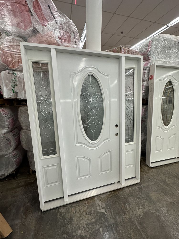 Decorative Entrance Door 36"x80" With 2 Side Lights LH. Prehung Nickel Oval Glass, Sense & Sensibility Pattern, 4 9/16 Jamb, Actual 63 3/8x81 1/2, Grade A This is a liquidated product. The Auction Company makes no express or implied representations or warranties of any kind regarding the Product. Any pre-existing retail, wholesale or manufacturer warranties will not transfer with the sale of this Product unless expressly stated otherwise on this page. The Buyer accepts the Product in as-is condition, with all faults. Weight: 190lbs . Sold by: Door . Sold as: Quantity X Price. Inventory #: 5212-S&S-1-3-1 Oval N