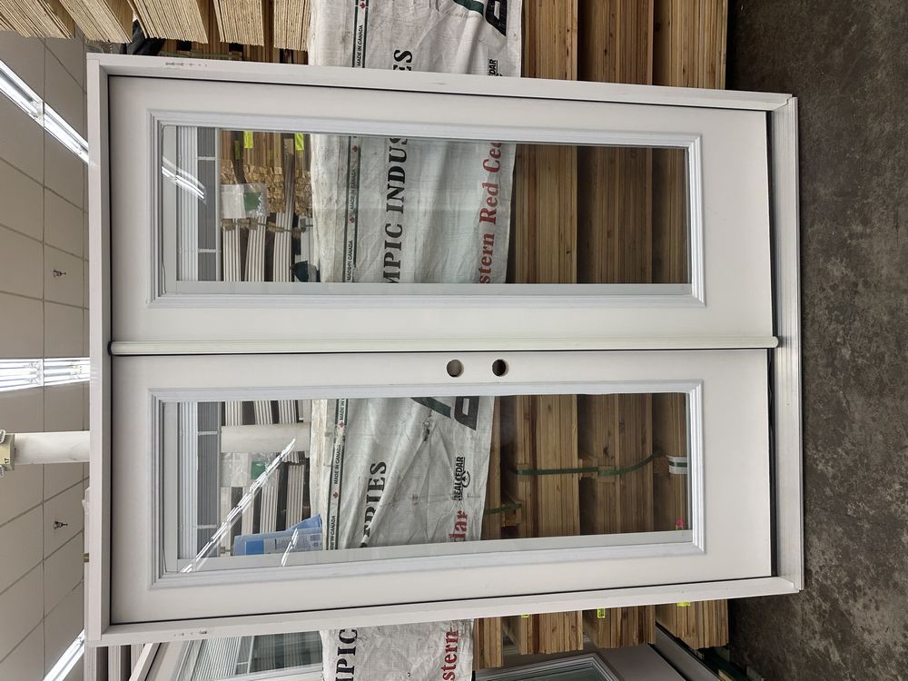 Gray Exterior Fiberglass Door 36" Kit 3/4 Lite RH Inswing. By Sure Rock, 4 9/16" Jamb, Rough Opening 38"x82 1/2", W/Brick Moulding & Extension Sill, 2 Year Warranty, Pre Hung, Grade: A,This is a liquidated product. The Auction Company makes no express or implied representations or warranties of any kind regarding the Product. Any pre-existing retail, wholesale or manufacturer warranties will not transfer with the sale of this Product unless expressly stated otherwise on this page. The Buyer accepts the Product in as-is condition, with all faults. Weight: 85 lbs. Sold by: Door. Sold as: Quantity X Price. Inventory #: 5218-FO301A-GS36PR