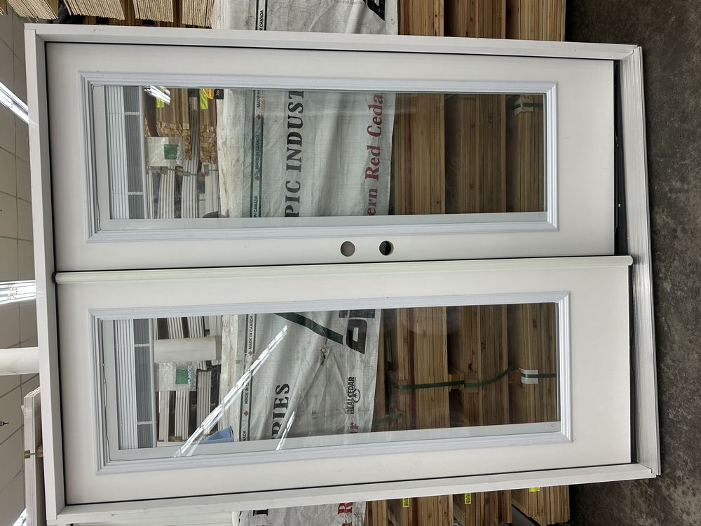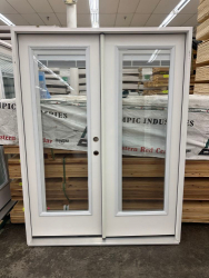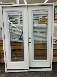 5' Exterior Double Patio Door with Full Glass, RH. Fiber Glass, Pre-Hung, with Mini Blinds in Glass, Right Handed, Grade: B,This is a liquidated product. The Auction Company makes no express or implied representations or warranties of any kind regarding the Product. Any pre-existing retail, wholesale or manufacturer warranties will not transfer with the sale of this Product unless expressly stated otherwise on this page. The Buyer accepts the Product in as-is condition, with all faults. Weight: X. Sold by: Door. Sold as: Quantity X Price. Inventory #: 5210-FG-PATIO-MB-5/0-RH