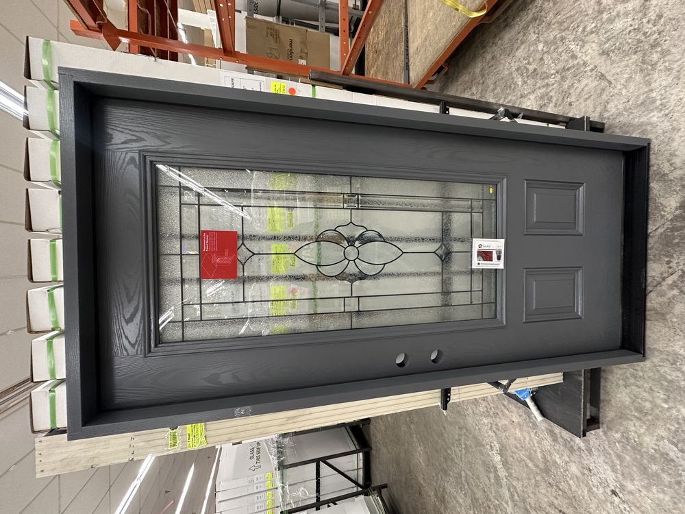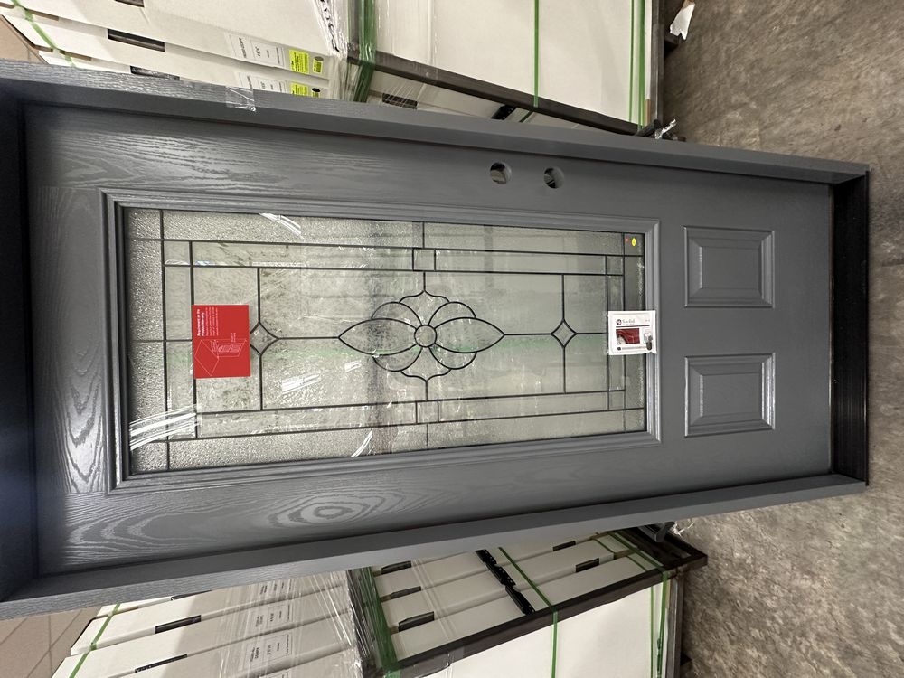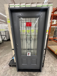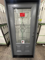 Gray Exterior Fiberglass Door 36" Kit 3/4 Lite LH Inswing. By Sure Rock, 4 9/16" Jamb, Rough Opening 38"x82 1/2", W/Brick Moulding & Extension Sill, 2 Year Warranty, Pre Hung, Grade: A,This is a liquidated product. The Auction Company makes no express or implied representations or warranties of any kind regarding the Product. Any pre-existing retail, wholesale or manufacturer warranties will not transfer with the sale of this Product unless expressly stated otherwise on this page. The Buyer accepts the Product in as-is condition, with all faults. Weight: 85 lbs. Sold by: Door. Sold as: Quantity X Price. Inventory #: 5218-FO301A-GS36PL