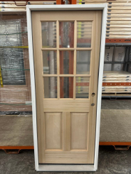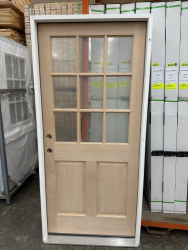 Doug Fir Exterior 9 Lite Door 36"x80" LH. Unfinished, Single Pane Glass, Prehung Grade: 1st Quality,This is a liquidated product. The Auction Company makes no express or implied representations or warranties of any kind regarding the Product. Any pre-existing retail, wholesale or manufacturer warranties will not transfer with the sale of this Product unless expressly stated otherwise on this page. The Buyer accepts the Product in as-is condition, with all faults. Weight: x. Sold by: Door. Sold as: Quantity X Price. Inventory #: 5219-EXT FIR 9L 36 LH