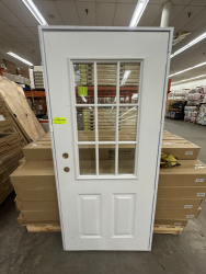 Exterior Mobile Home Door 2 Panel 9 Lite 34"x76" Outswing Left Hand Door. 24 Gauge Steel, Prehung, Actual Dimensions 36 1/4"x78 5/8", 4 9/16 Jamb Grade: B,This is a liquidated product. The Auction Company makes no express or implied representations or warranties of any kind regarding the Product. Any pre-existing retail, wholesale or manufacturer warranties will not transfer with the sale of this Product unless expressly stated otherwise on this page. The Buyer accepts the Product in as-is condition, with all faults. Weight: 75. Sold by: Door. Sold as: Quantity X Price. Inventory #: 5617-MB-2PNL-9 LITE RH
